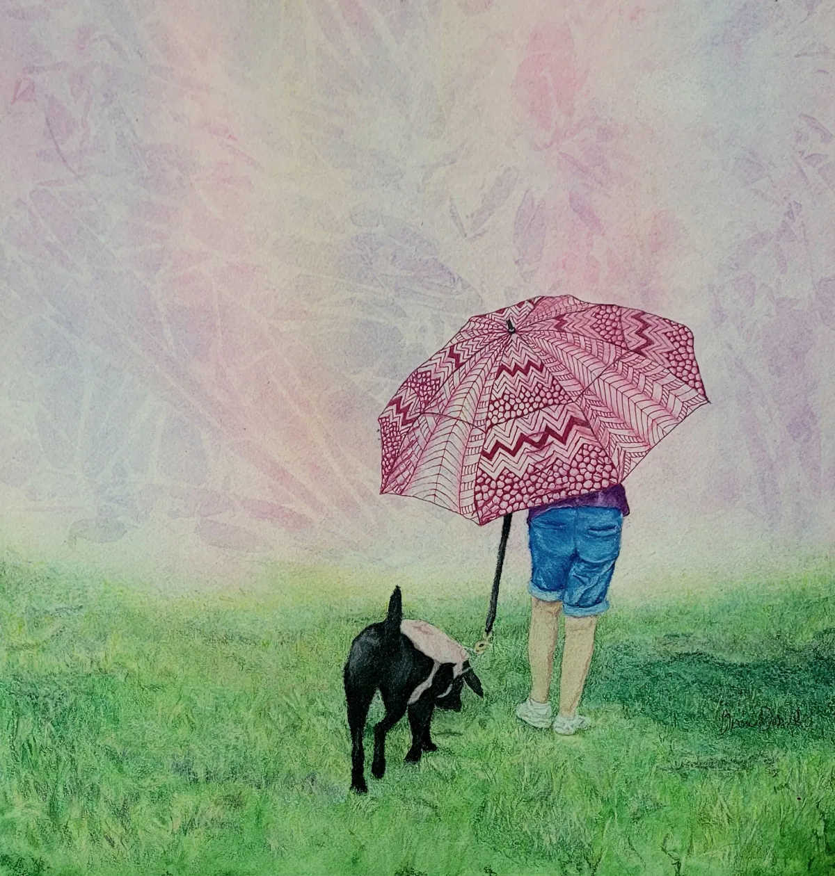 umbrelladogwalkgreen fieldpatternpersonrainRealismStorytelling / NarrativeLight / SereneTherapeutic / ReflectiveLandscape / NatureAnimals / WildlifePortrait / PeopleHope / Healing / Resilience