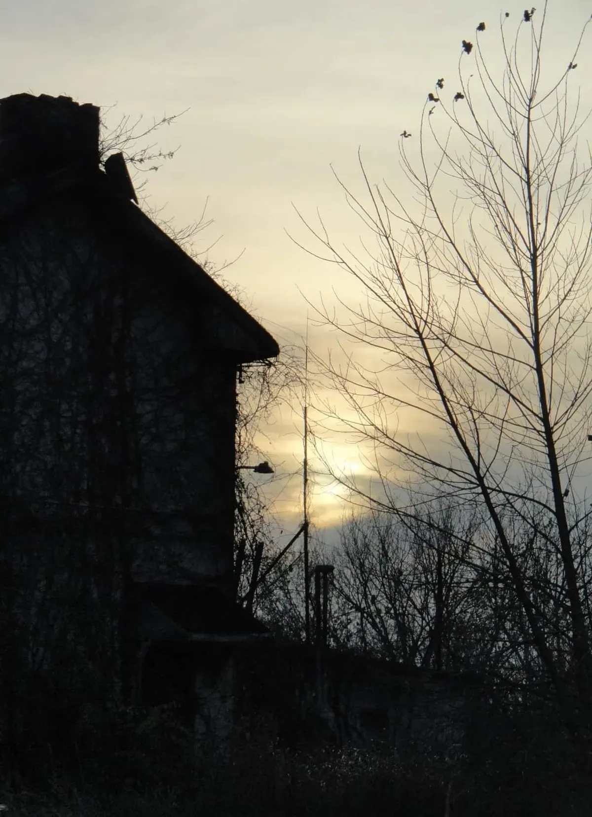 silhouettebare treesold houseovercast skytwilightgloomywinterabandonedRealismDark / DramaticStorytelling / NarrativeExpressionism / EmotionalLandscape / NatureCity / ArchitectureSpiritual / Symbolic
