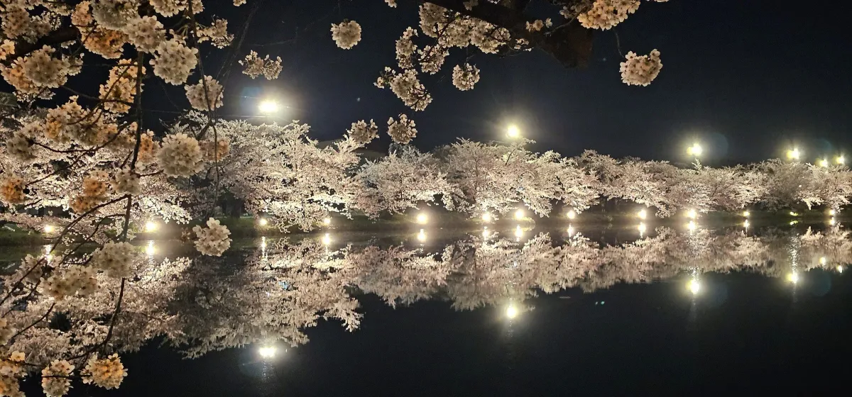 cherry blossomsnightreflectionwaterspringilluminatedsereneRealismLight / SereneStorytelling / NarrativeInspirational / UpliftingLandscape / NatureSeascape / WaterHistorical / CulturalSpiritual / Symbolic