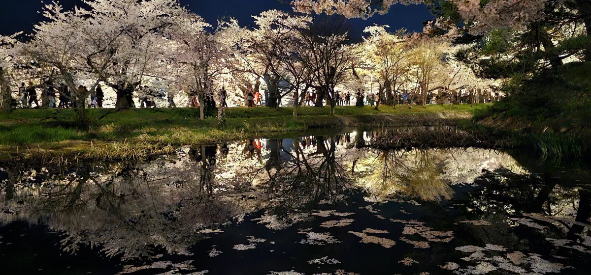 cherry blossomssakuranightreflectiontreespondilluminatednatureparkspringRealismDark / DramaticStorytelling / NarrativeLandscape / NatureSeascape / WaterHistorical / Cultural