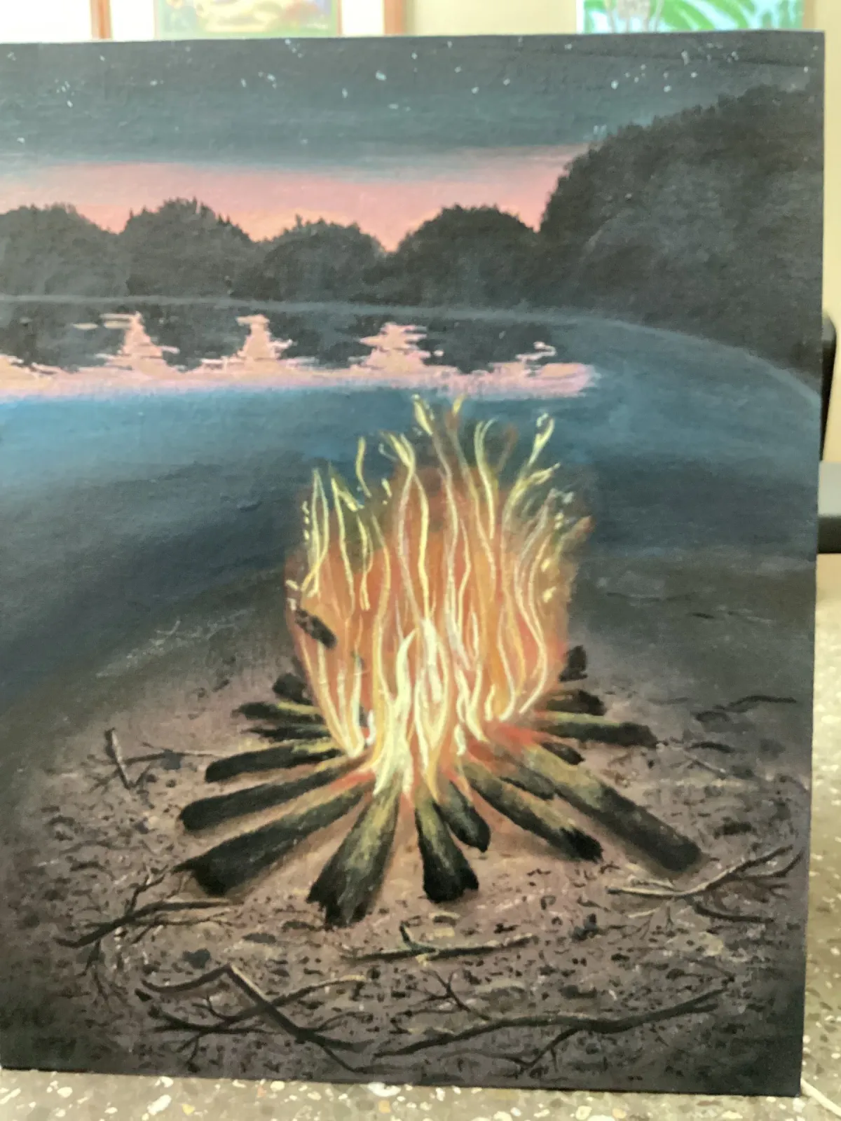 campfirenightlakenatureduskfirelightoutdoorRealismDark / DramaticLight / SereneStorytelling / NarrativeLandscape / NatureSeascape / Water