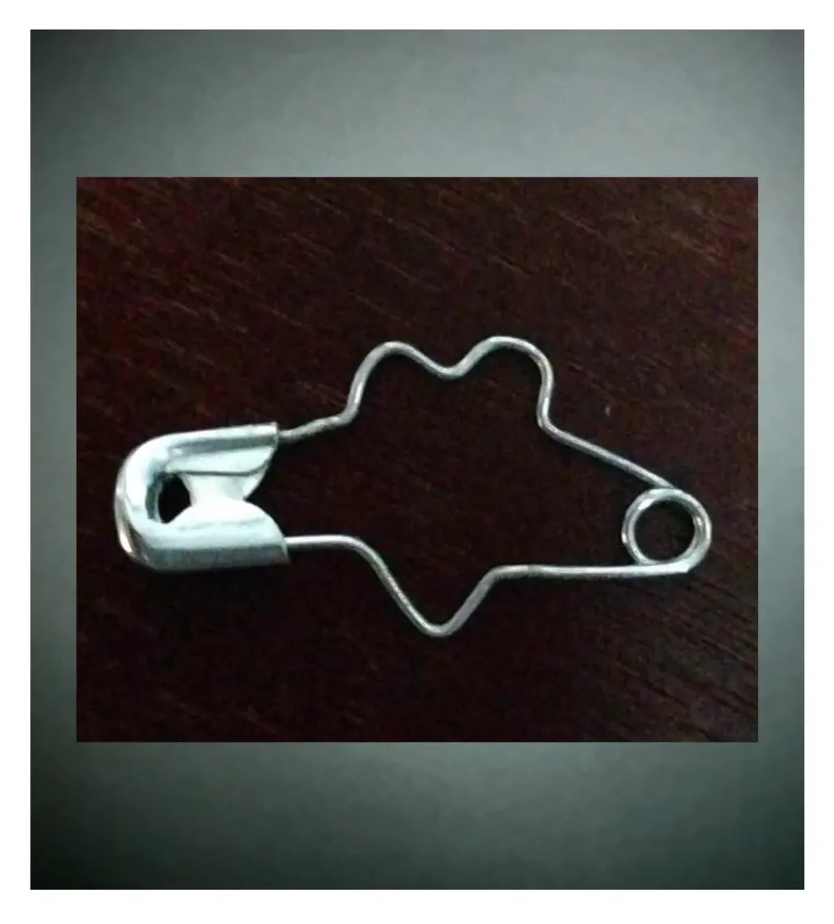 safety pinbent metalabstract shapedark woodmetallicclose-upeveryday objectRealismMinimalistContemporary / ModernStill Life / ObjectsAbstract / Conceptual