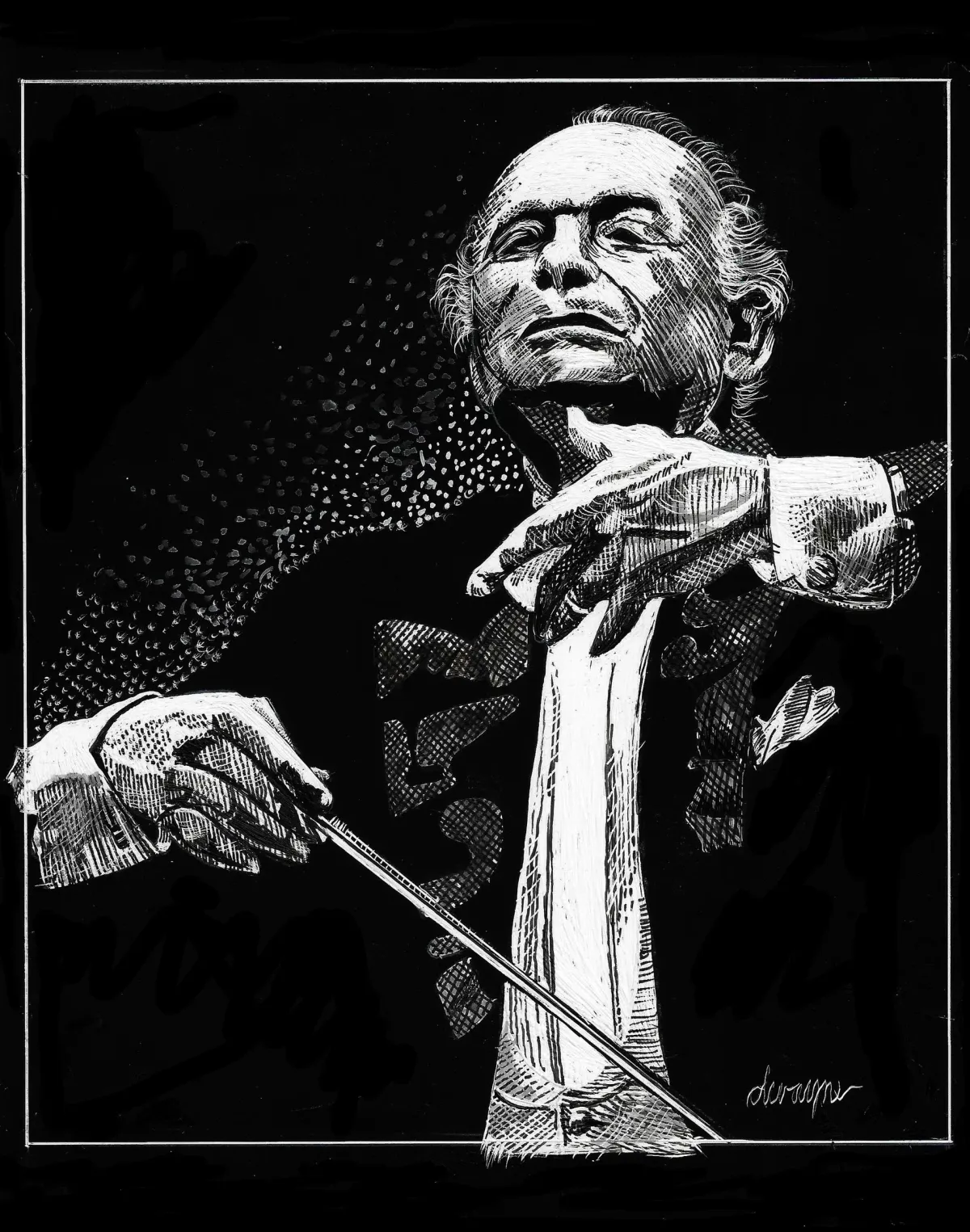 conductororchestramusicportraitblack and whiteillustrationmaestroRealismBold / GraphicDark / DramaticStorytelling / NarrativePortrait / PeopleHistorical / Cultural