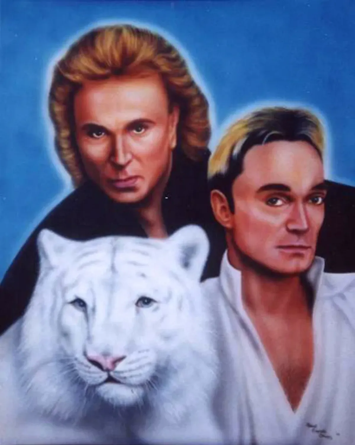 portraitwhite tigermenblue backgroundsiegfried & royanimalsrealismRealismStorytelling / NarrativeAnimals / WildlifePortrait / PeopleHistorical / Cultural