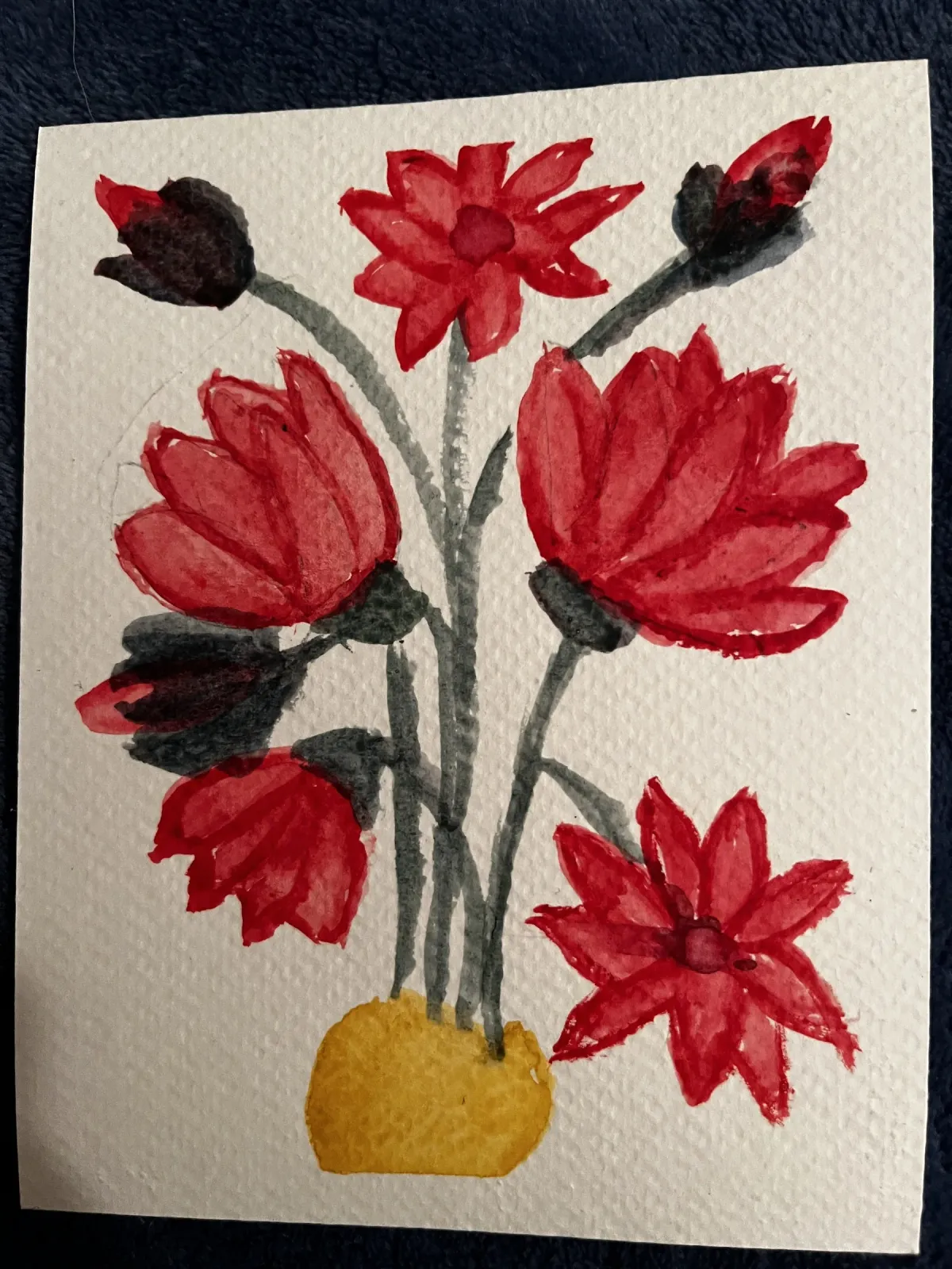 watercolorfloralbouquetred flowersyellow vasestill lifesimple artBold / GraphicLight / SereneContemporary / ModernStill Life / Objects