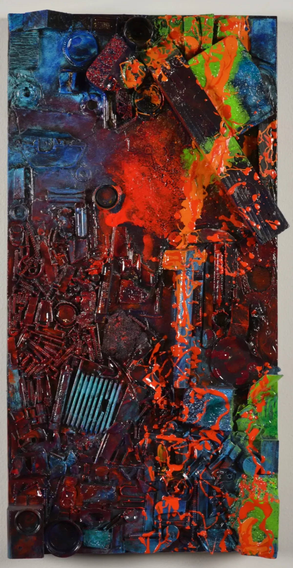 mixed mediaassemblageabstracttexturedfound objectsvibrantdramaticAbstractContemporary / ModernBold / GraphicDark / DramaticExpressionism / EmotionalAbstract / ConceptualStill Life / Objects