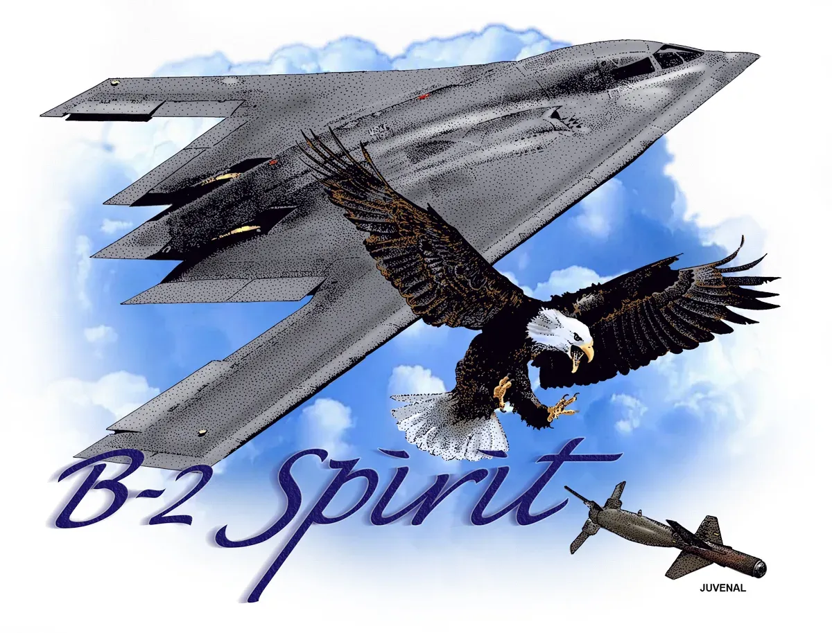 B-2 Spiritstealth bomberbald eaglemilitary aircraftaviationpatriotismcloudsRealismBold / GraphicStorytelling / NarrativeInspirational / UpliftingPatriotic / Military / FreedomAnimals / WildlifeLandscape / NatureSpiritual / Symbolic