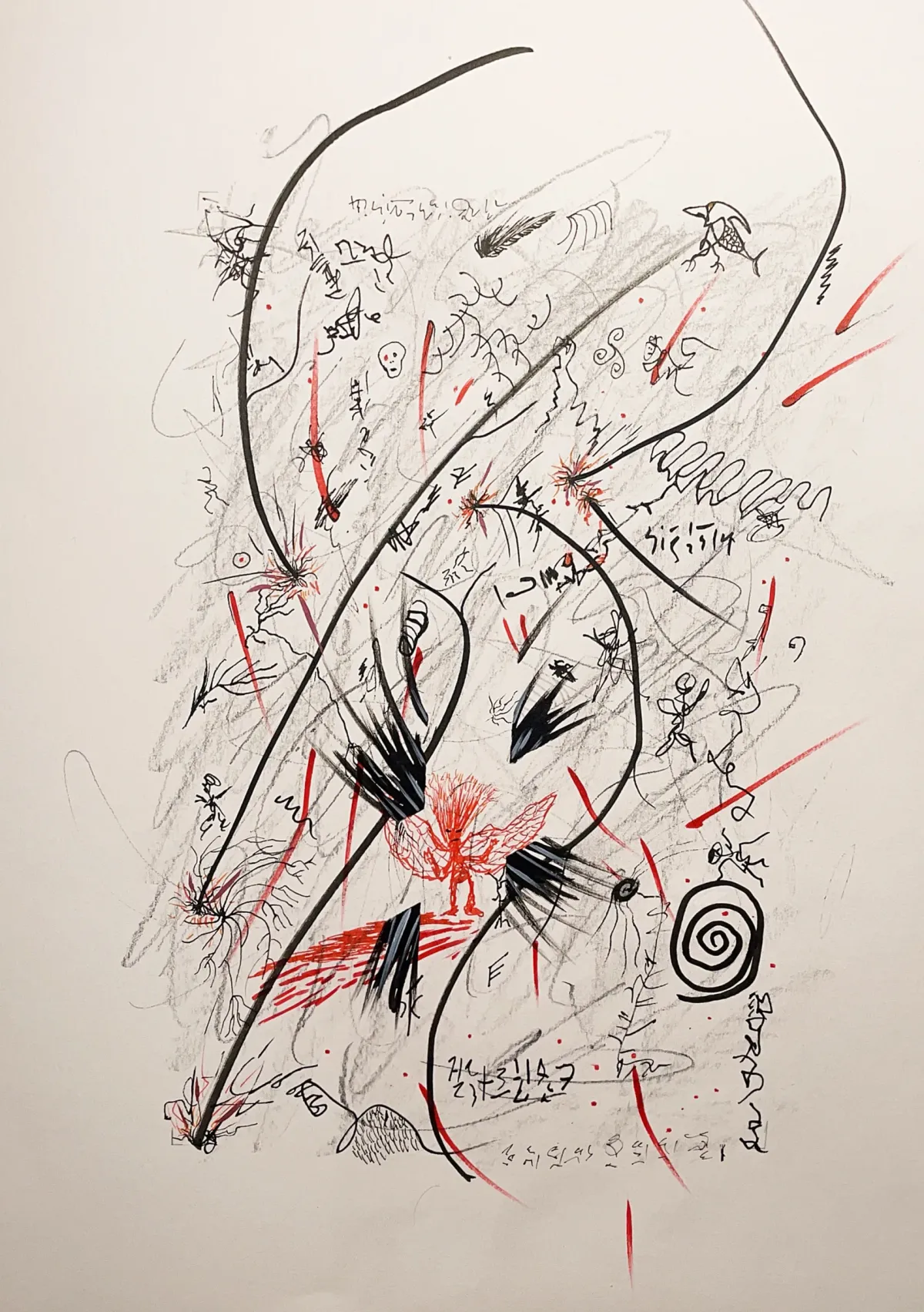 Abstract artExpressionismDoodleScribbleMixed mediaRed and blackFigurative abstractionAbstractExpressionism / EmotionalBold / GraphicDark / DramaticStorytelling / NarrativeAbstract / ConceptualSpiritual / SymbolicConflict / Sacrifice