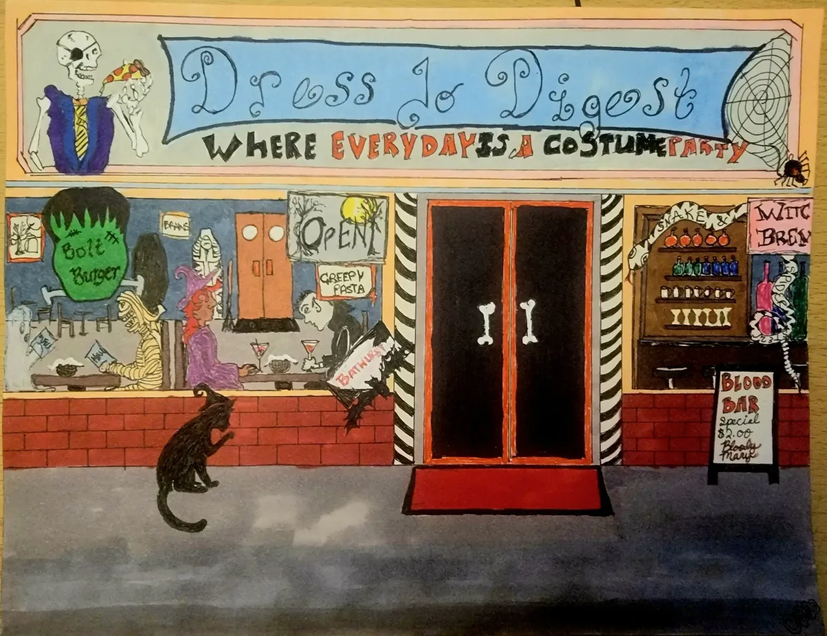 HalloweencartoonmonstersrestaurantbarwhimsicalspookyStorytelling / NarrativeBold / GraphicContemporary / ModernSurreal / ImaginativeHumor / WhimsyStill Life / ObjectsHistorical / Cultural