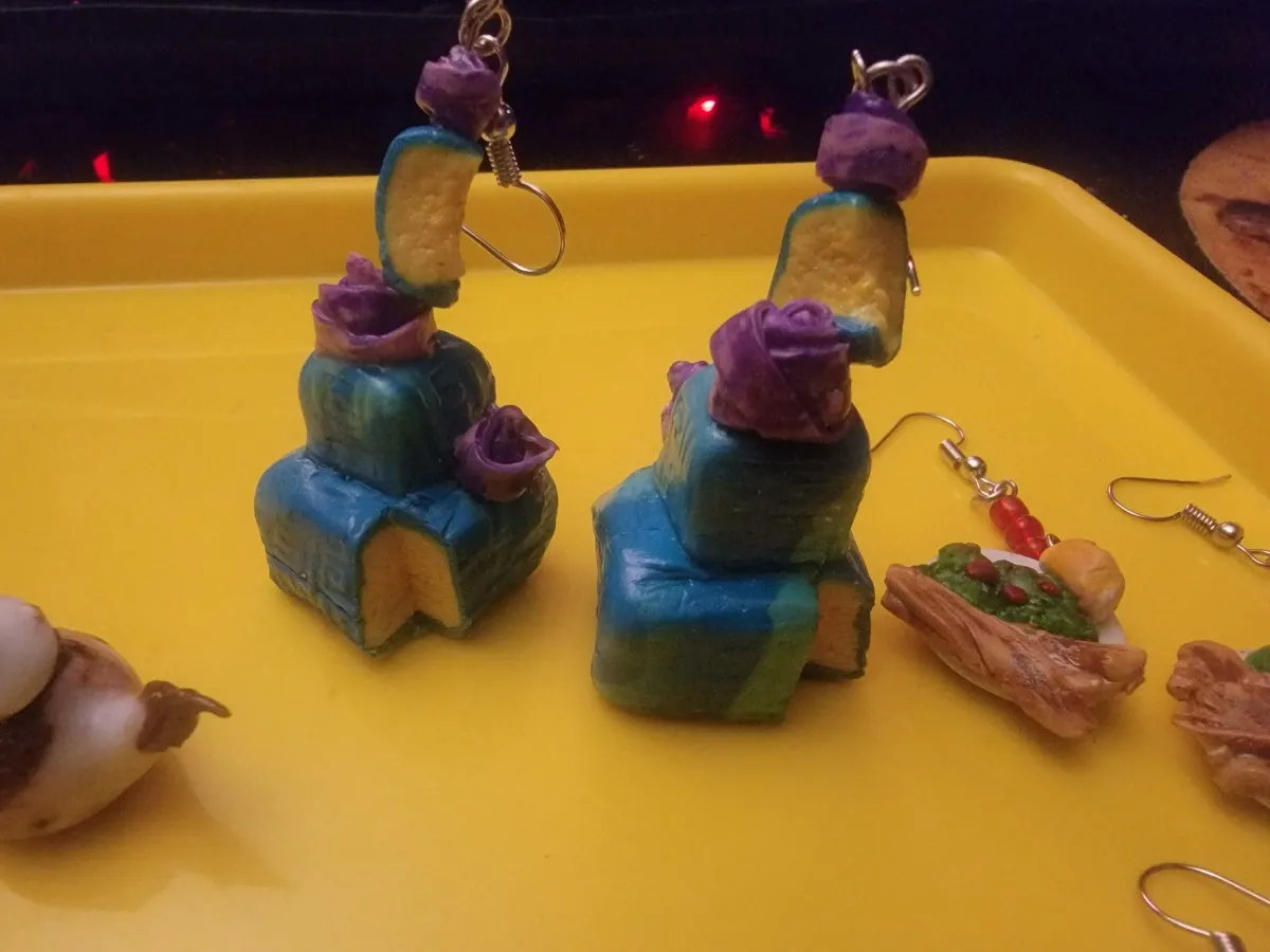 handmade earringsminiature craftspolymer clayjewelrycolorfulwhimsicalyellow trayRealismContemporary / ModernBold / GraphicStill Life / ObjectsSurreal / Imaginative