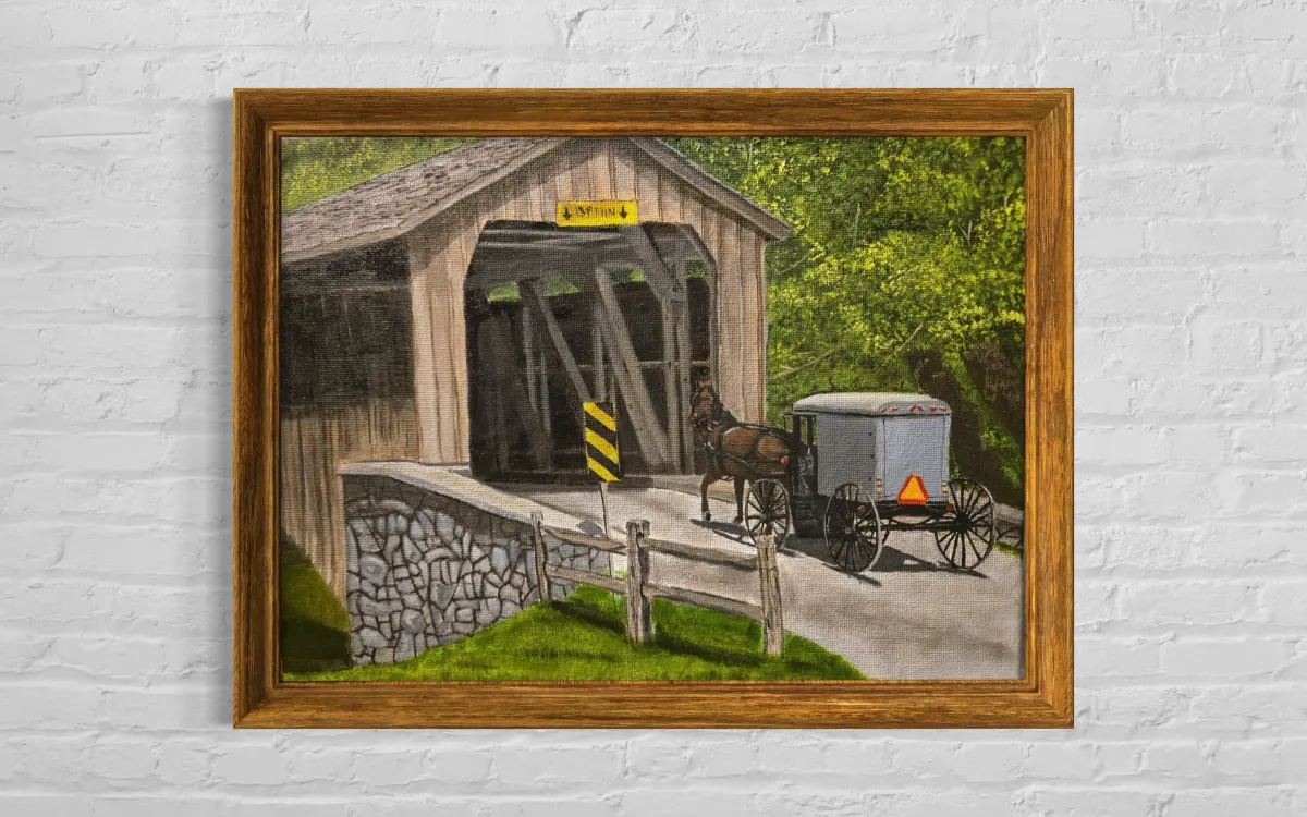 covered bridgehorse-drawn buggyrural landscapecountrysidenaturepaintingtraditionalRealismStorytelling / NarrativeLandscape / NatureHistorical / Cultural