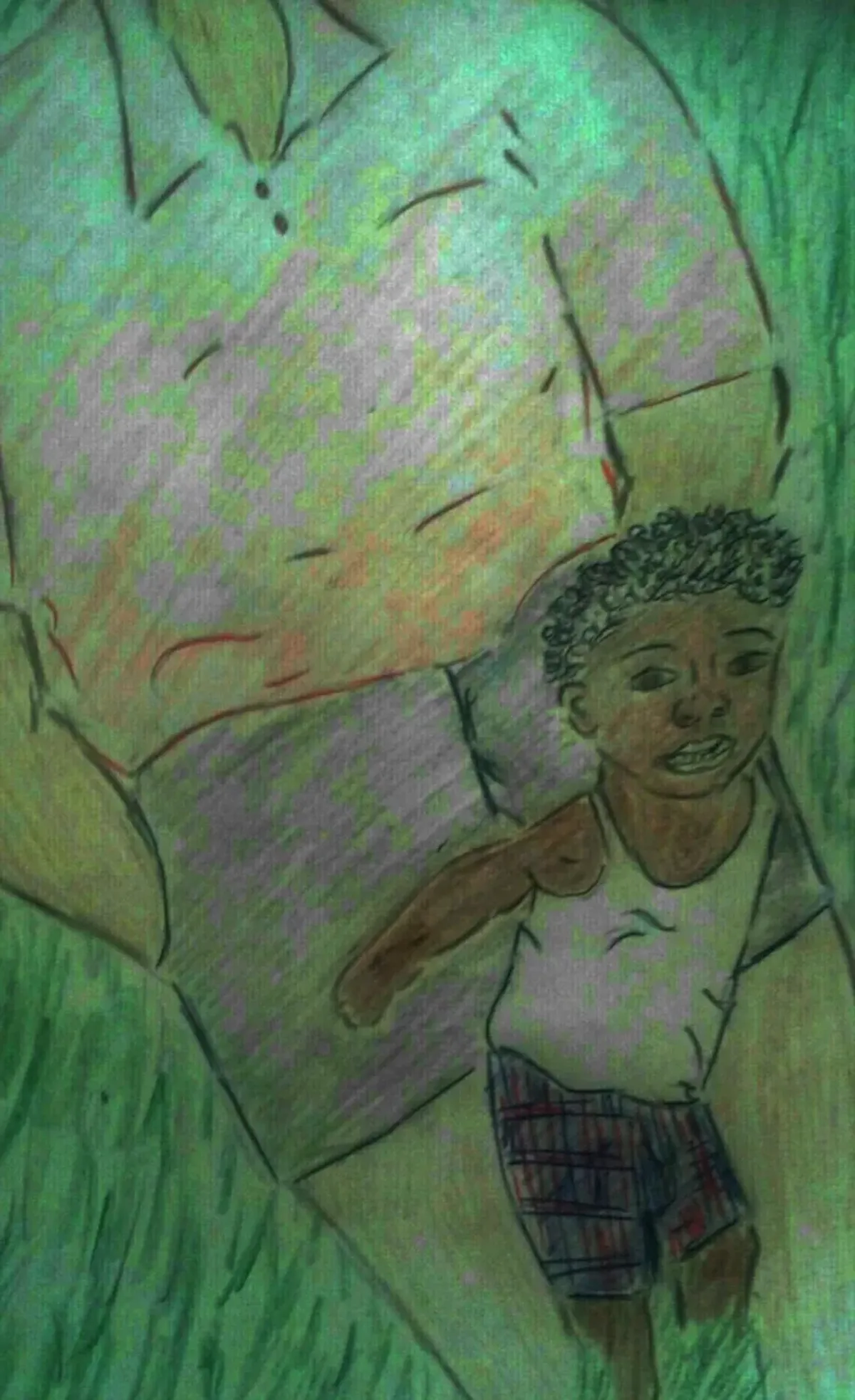 drawingchildportraitgreenplaidoutdoorsfamilycolored pencilRealismStorytelling / NarrativePortrait / PeopleLandscape / Nature