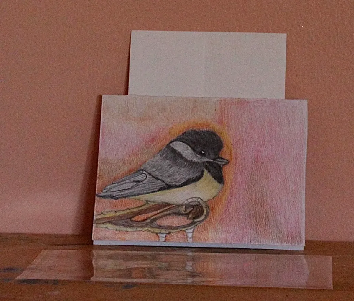 birdchickadeecolored pencilanimal artnaturedrawingwarm colorsRealismLight / SereneAnimals / WildlifeLandscape / Nature