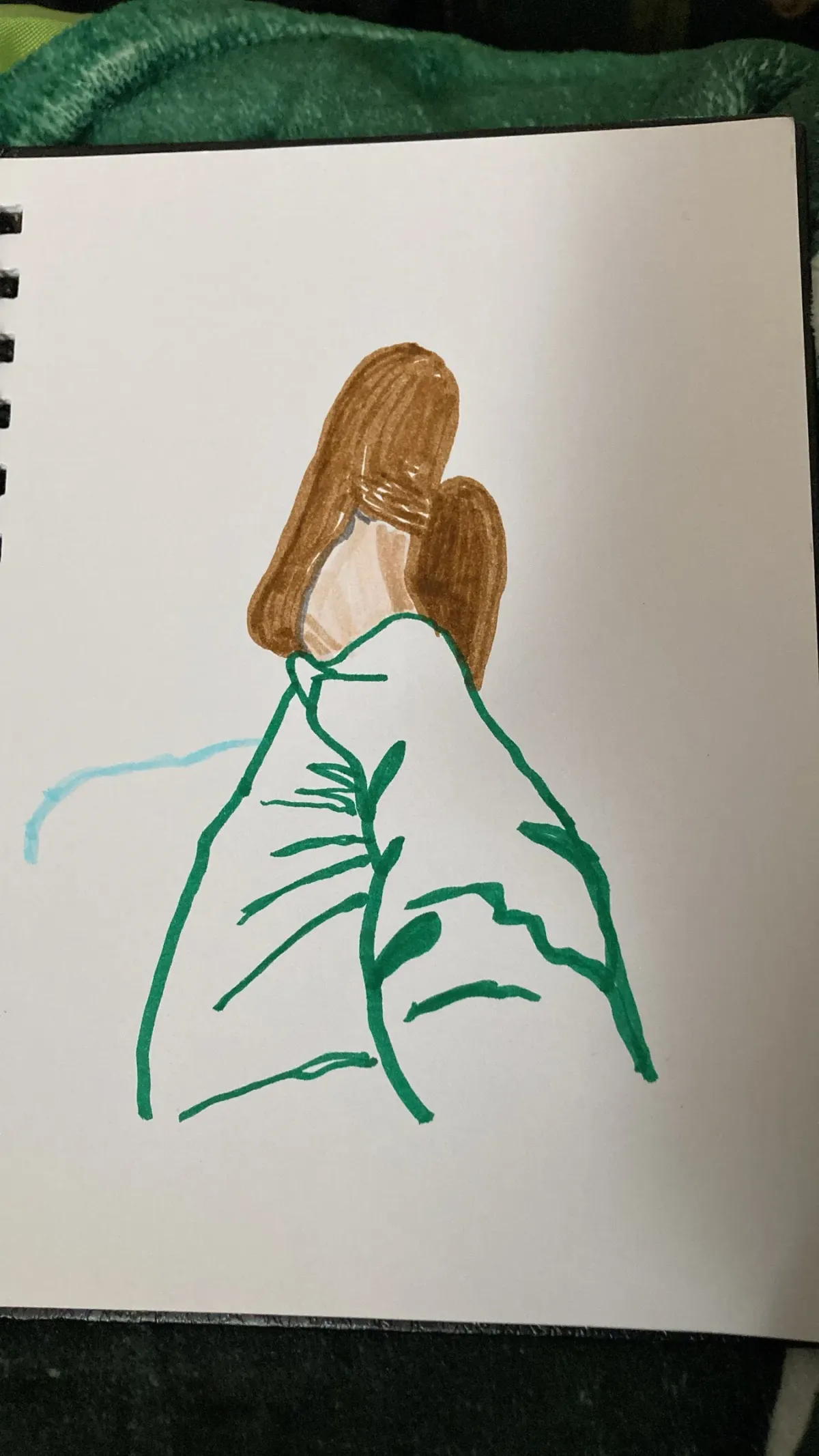 drawingmarker artminimalistfigureback viewbrown hairgreen outlineMinimalistBold / GraphicContemporary / ModernPortrait / People