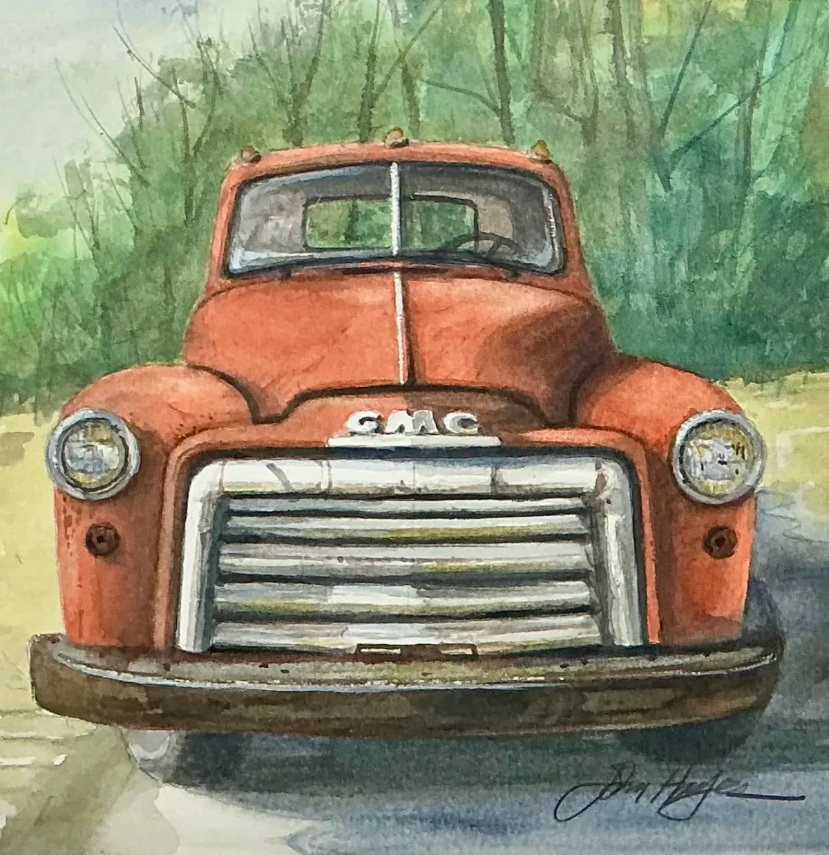 vintage truckGMCwatercolorautomotive artrusticvehicleclassic carRealismStorytelling / NarrativeLight / SereneStill Life / ObjectsLandscape / NatureHistorical / Cultural