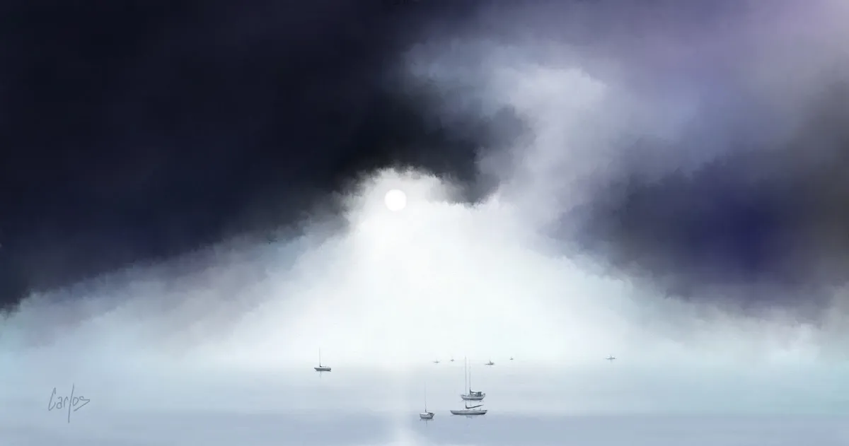 seascapedramatic skysailboatsdigital paintinglight breakthroughmoodystormyExpressionism / EmotionalContemporary / ModernBold / GraphicDark / DramaticLight / SereneStorytelling / NarrativeLandscape / NatureSeascape / WaterSpiritual / SymbolicHope / Healing / Resilience