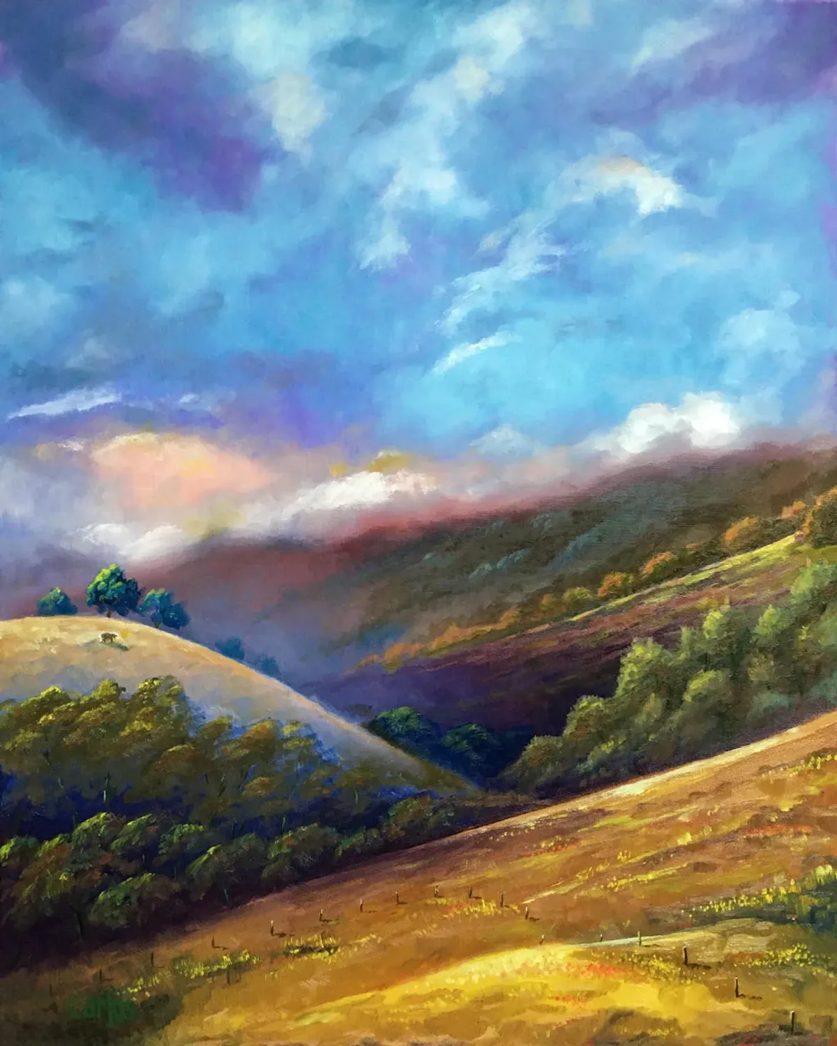 landscapehillsskycloudsnaturepaintingvibrantImpressionismLight / SereneInspirational / UpliftingLandscape / Nature