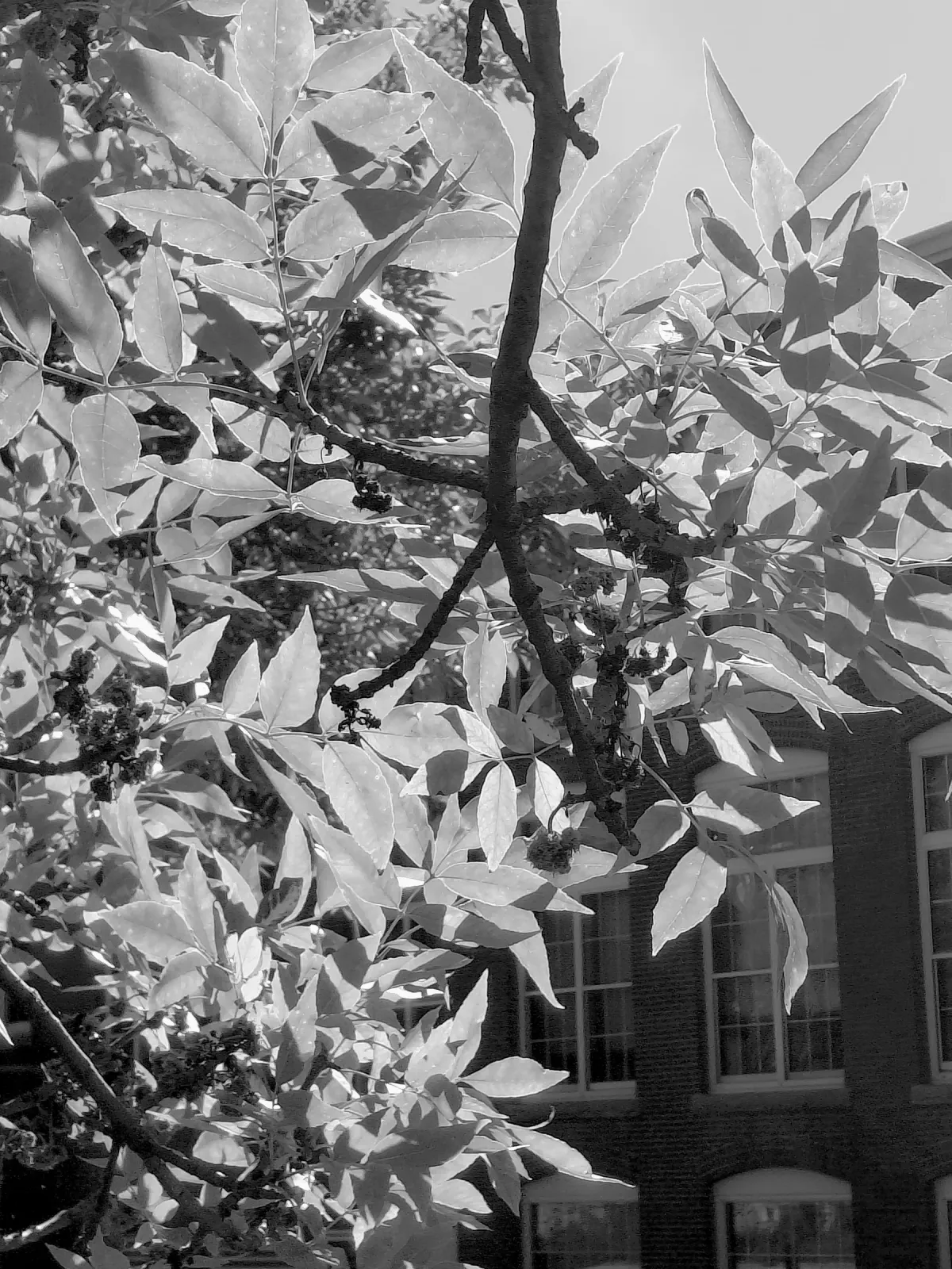 leavesfoliagebranchesblack and whitecontrastsunlightnaturebuildingRealismDark / DramaticContemporary / ModernLandscape / NatureCity / Architecture