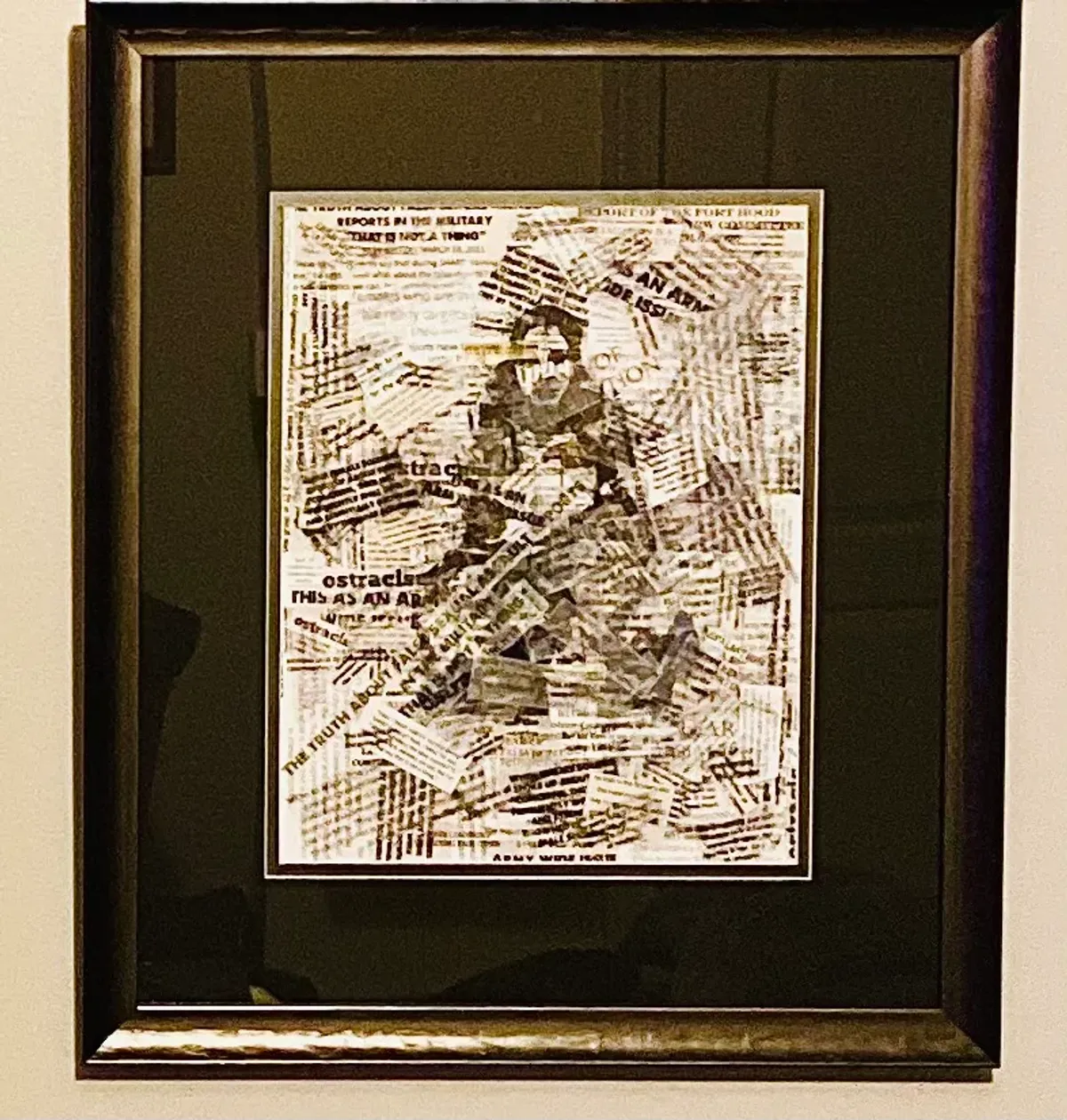 collagetext artmilitarynewspaperframed artsocial commentarycontemporaryContemporary / ModernBold / GraphicStorytelling / NarrativeStatement / ActivismExpressionism / EmotionalPatriotic / Military / FreedomConflict / SacrificeStatement / ActivismHistorical / CulturalPortrait / People