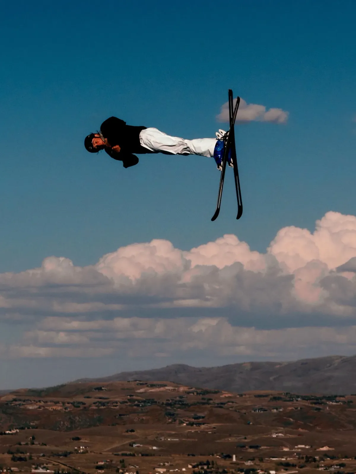 skieraerialfreestyle skiingblue skycloudsmountain landscapeaction sportRealismContemporary / ModernStorytelling / NarrativeInspirational / UpliftingBold / GraphicLandscape / NaturePortrait / People