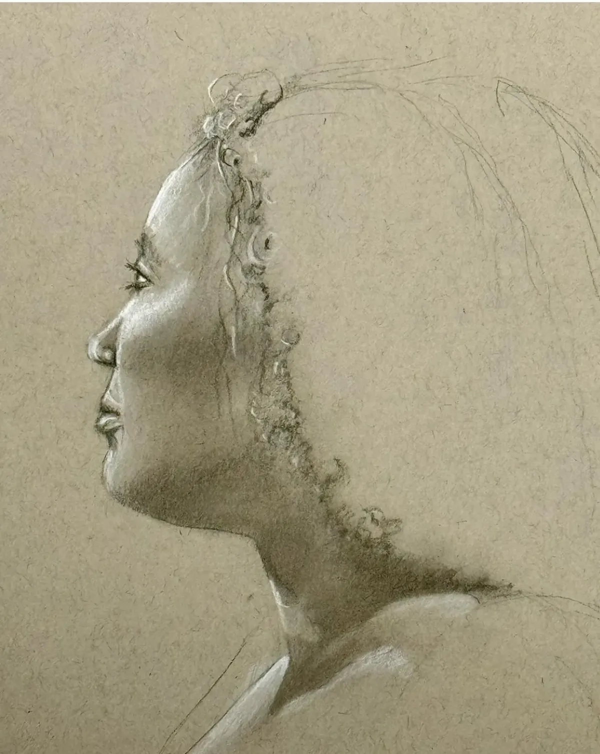 portraitprofilecharcoalsketchwomandrawingmonochromaticRealismContemporary / ModernLight / SereneStorytelling / NarrativePortrait / People