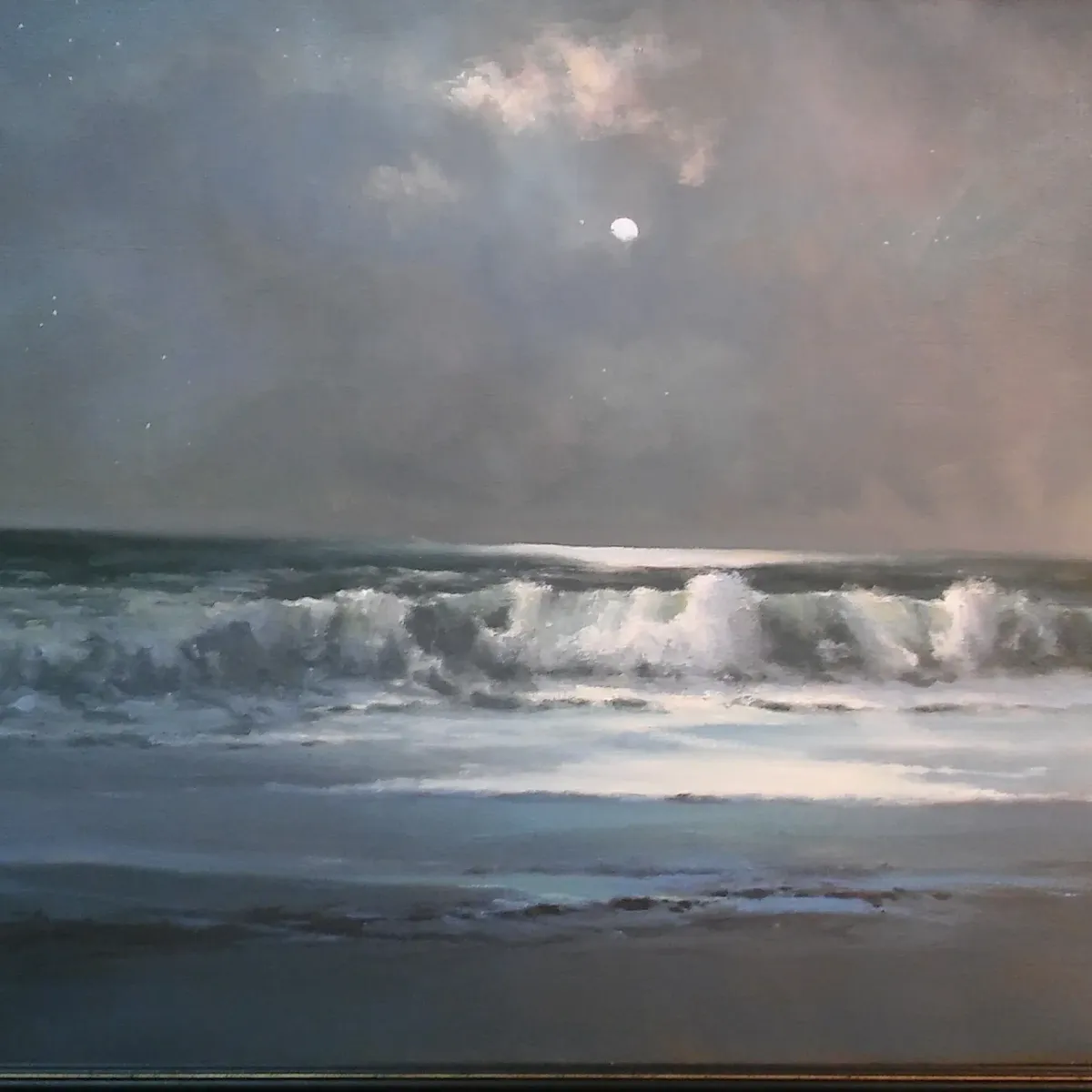 SeascapeNightMoonWavesOceanPaintingDramaticRealismDark / DramaticLight / SereneLandscape / NatureSeascape / WaterSpiritual / Symbolic