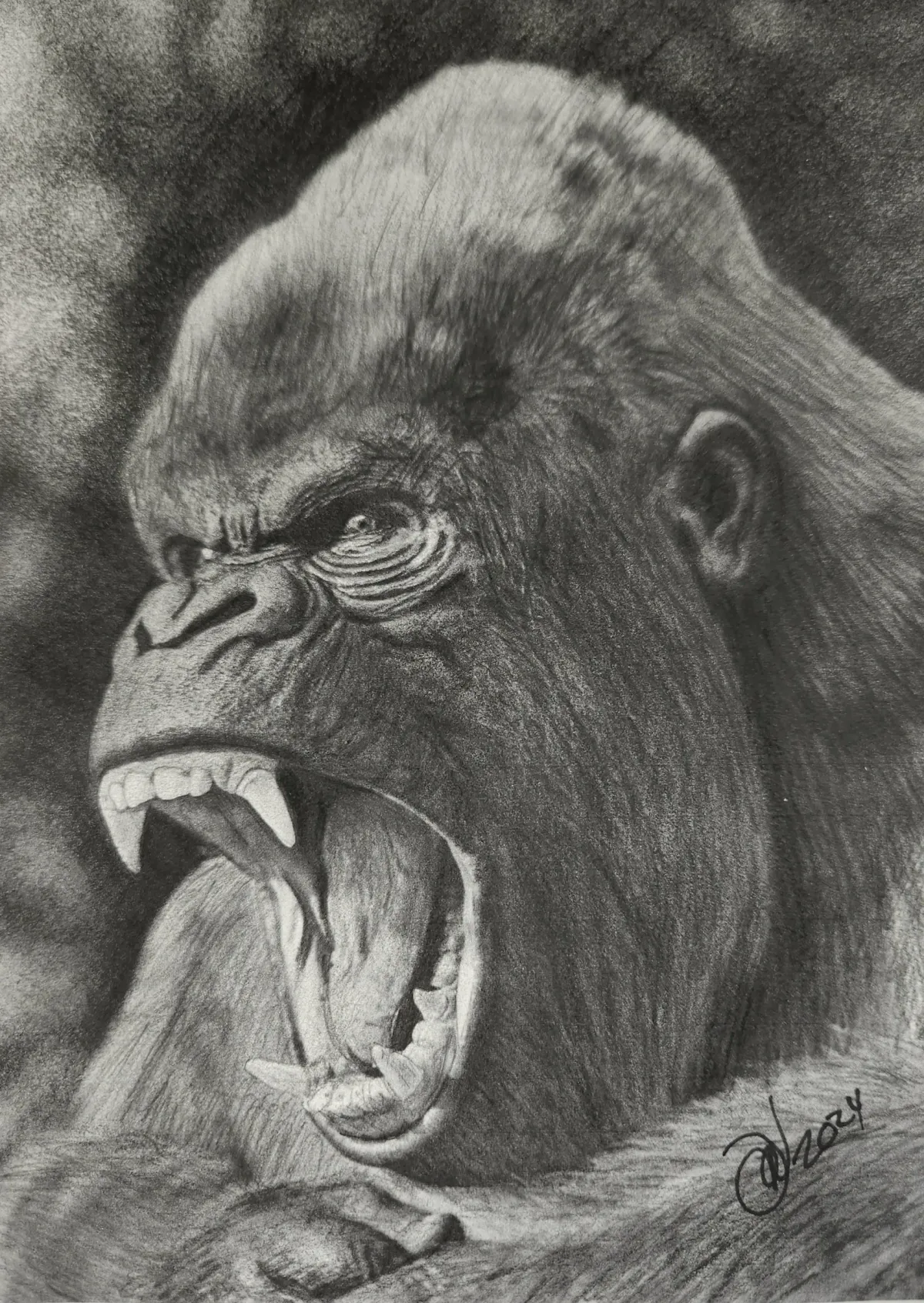 gorilladrawinggraphiterealismanimalprimateroarRealismDark / DramaticStorytelling / NarrativeAnimals / Wildlife