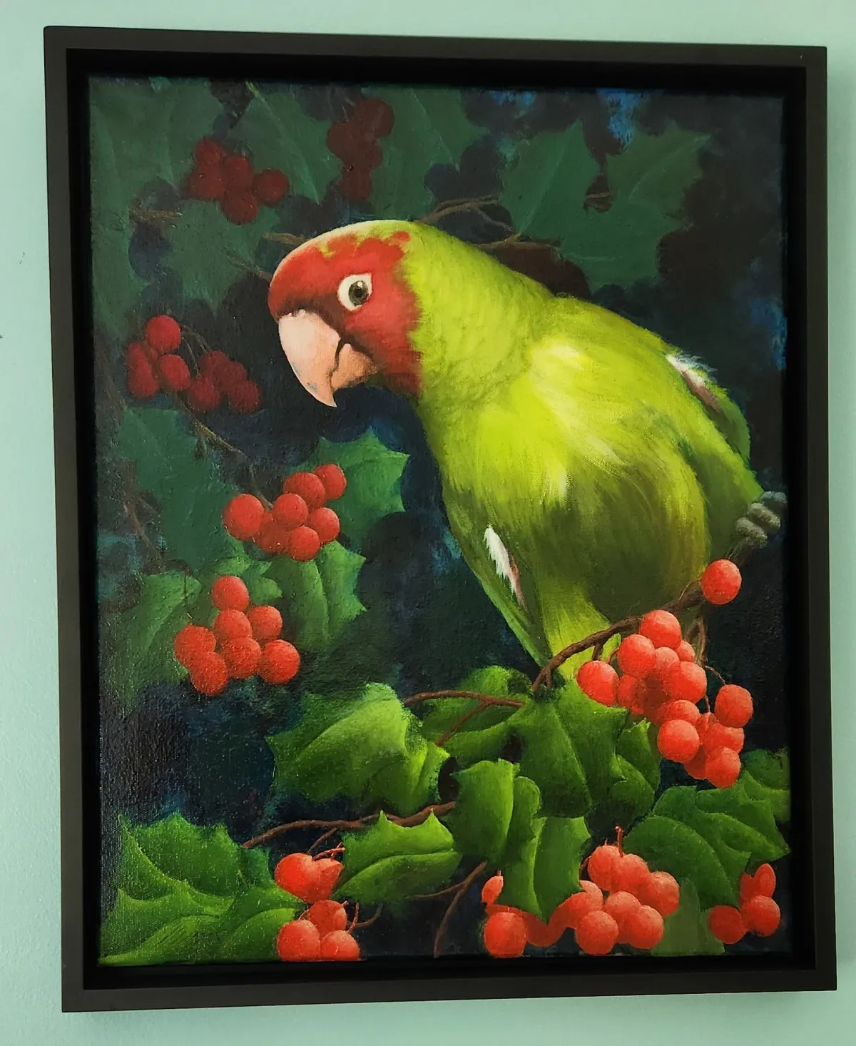 ParrotBirdHollyBerriesChristmasNaturePaintingRealismStorytelling / NarrativeAnimals / WildlifeLandscape / Nature