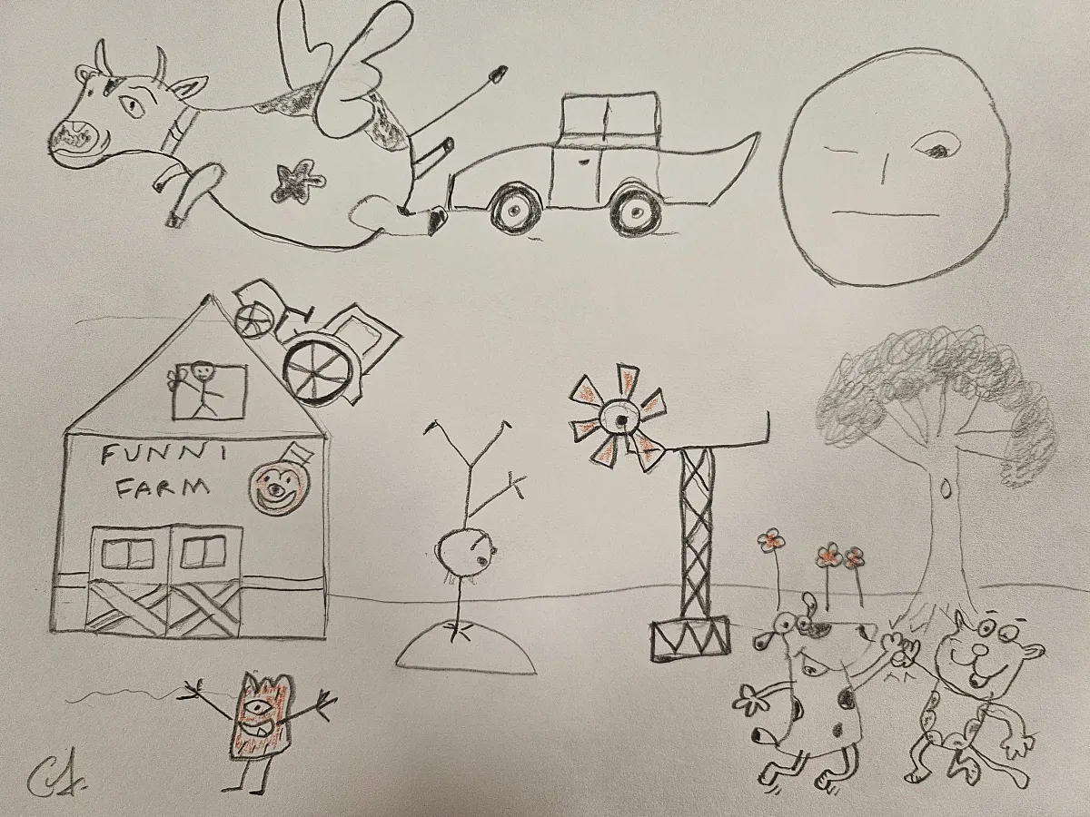 children's drawingwhimsicalpencil artcartoonnaive artimaginationsketchStorytelling / NarrativeLight / SereneBold / GraphicHumor / WhimsyAnimals / WildlifeSurreal / Imaginative