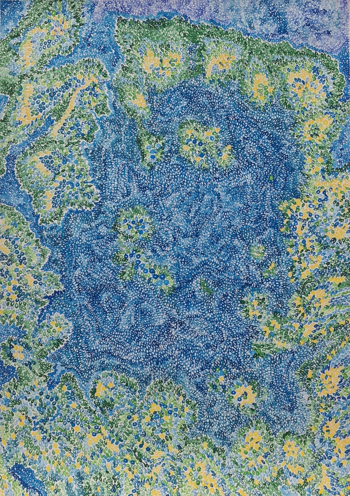 AbstractPointillismNature patternBlue green yellowTexturalImpressionisticAerial viewAbstractImpressionismContemporary / ModernLight / SereneLandscape / NatureAbstract / ConceptualSeascape / Water