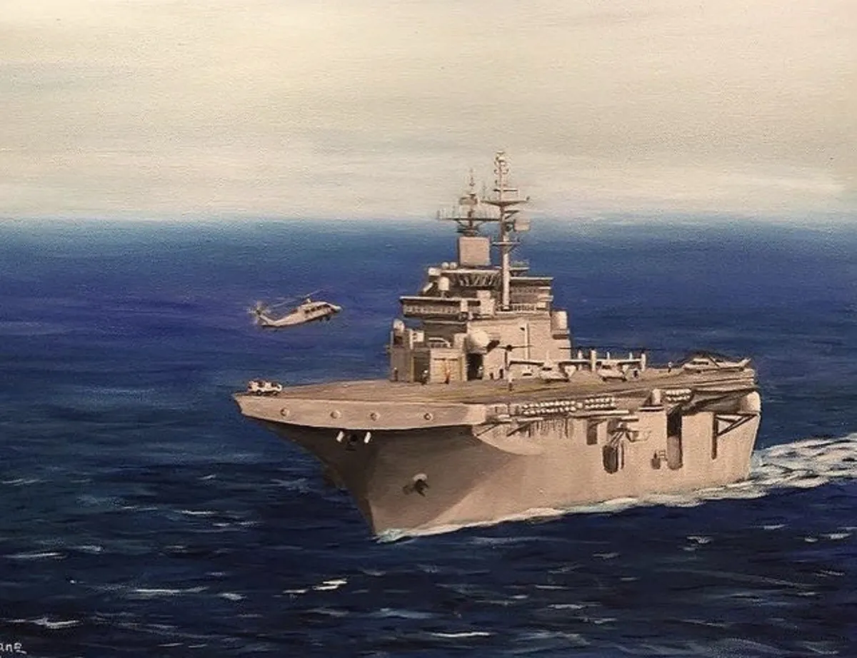 Military shipWarshipHelicopterOceanNaval vesselSeascapePaintingRealismStorytelling / NarrativePatriotic / Military / FreedomSeascape / Water