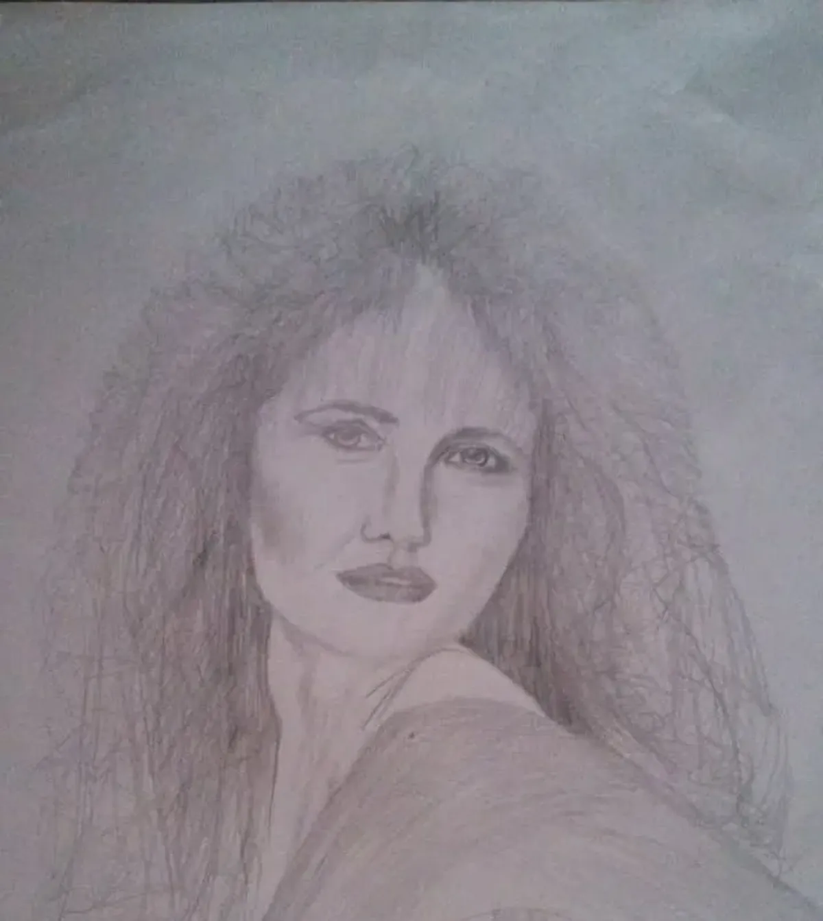 pencil drawingportraitwomanmonochromaticlong hairsketchgrayscaleRealismPortrait / People