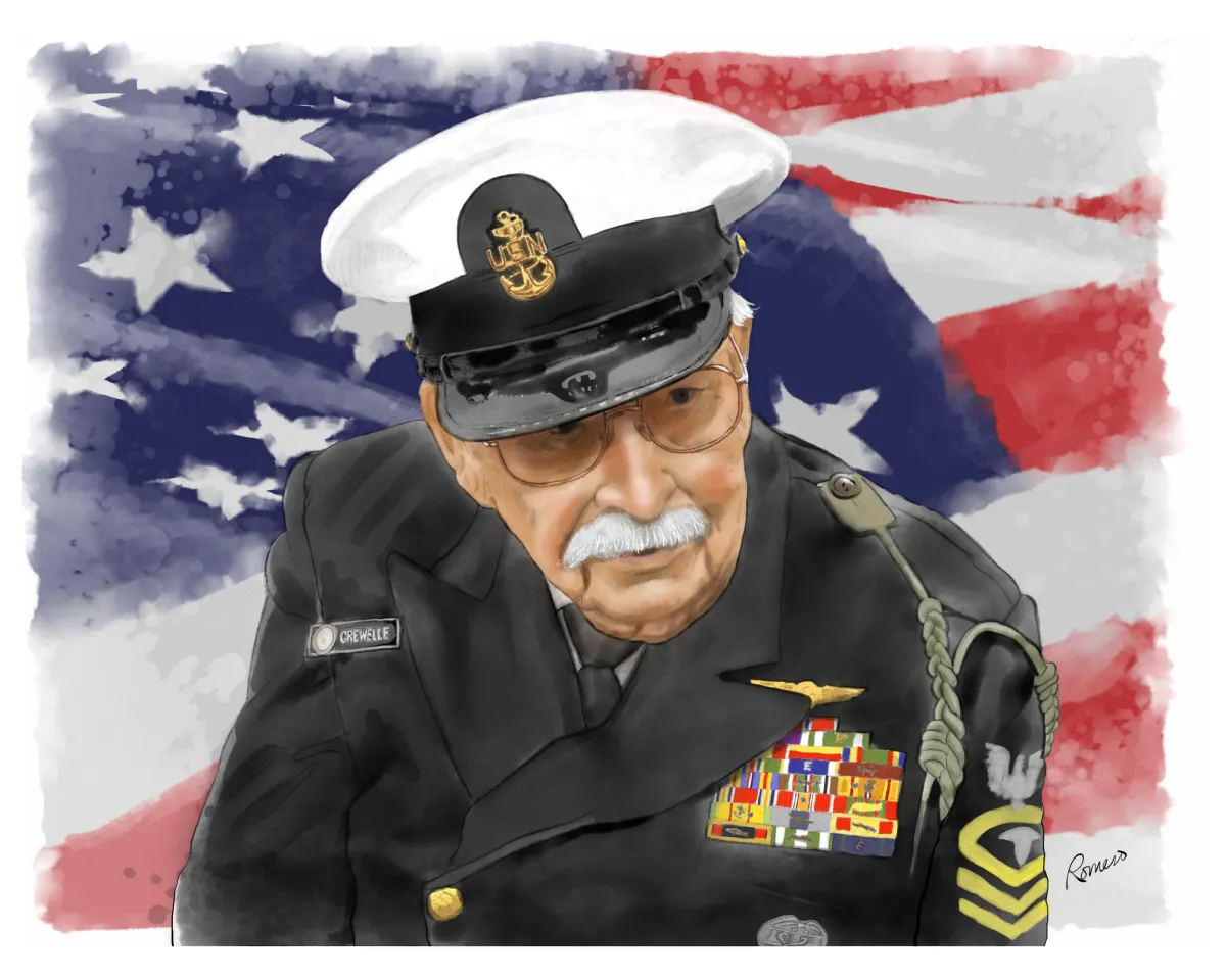 VeteranNavyMilitary uniformPortraitAmerican flagMedalsDigital paintingRealismContemporary / ModernStorytelling / NarrativeInspirational / UpliftingPatriotic / Military / FreedomVeteran Story / ServicePortrait / PeopleHistorical / Cultural