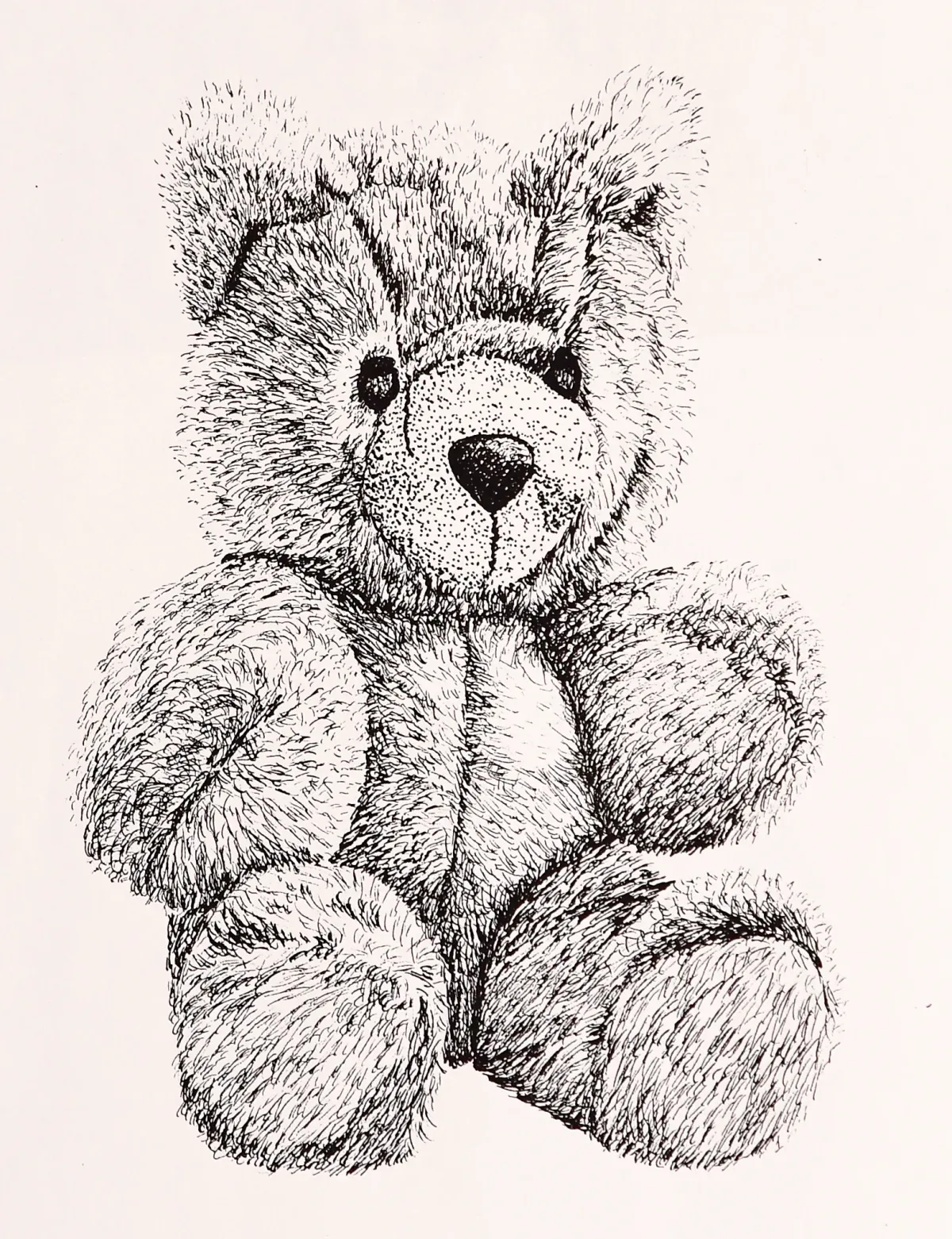 teddy bearpen and inkdrawingmonochromestipplingfluffytoyRealismStorytelling / NarrativeLight / SereneAnimals / WildlifeStill Life / Objects