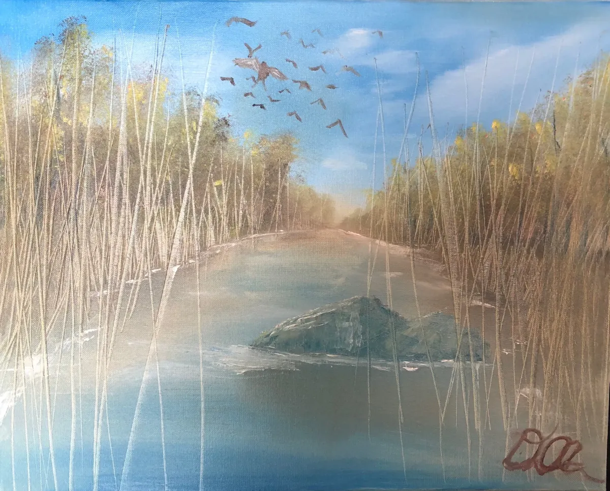 landscapemarshriverreedsbirdsnaturetranquilRealismLight / SereneStorytelling / NarrativeLandscape / NatureSeascape / WaterAnimals / Wildlife