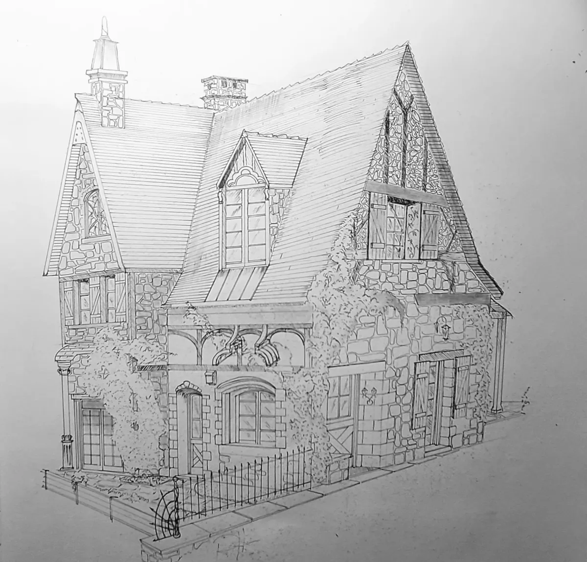 architectural drawingstone houseline artcottagesketchtraditional architecturedetailedRealismStorytelling / NarrativeLight / SereneCity / ArchitectureHistorical / Cultural