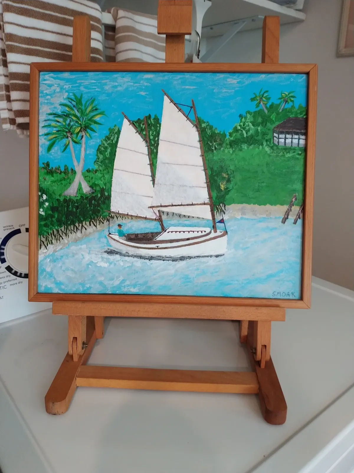 tropicalsailboatseascapepalm treesnaive artlandscapebeach sceneRealismLight / SereneContemporary / ModernLandscape / NatureSeascape / Water