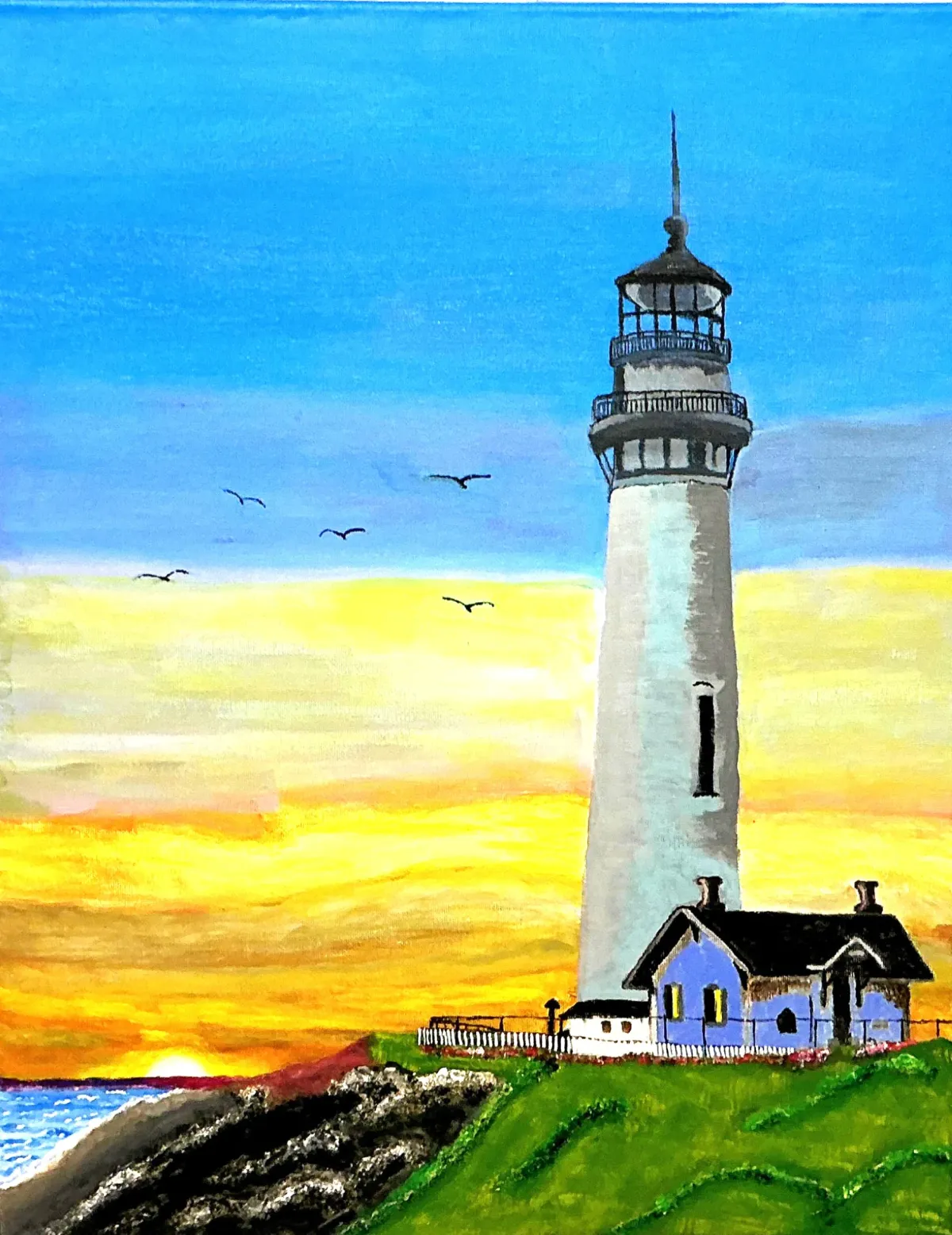 LighthouseSunsetSeascapeCliffPaintingOceanBirdsRealismBold / GraphicStorytelling / NarrativeLandscape / NatureSeascape / Water