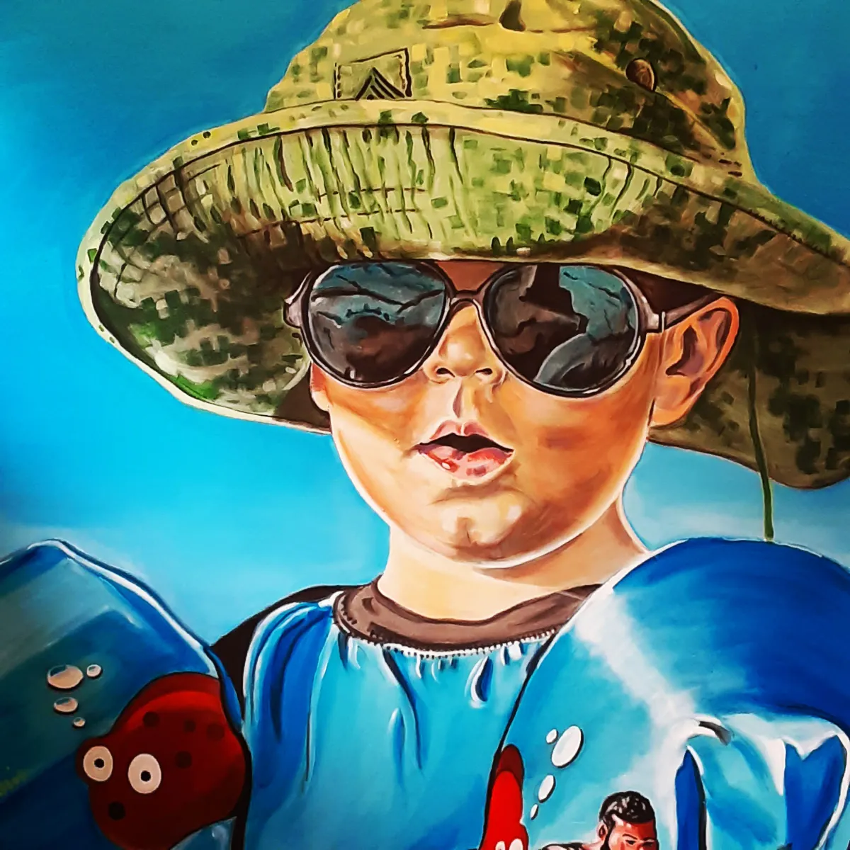 Childportraitcamouflage hatsunglassesswimmingsummerbright colorsRealismBold / GraphicContemporary / ModernPortrait / People