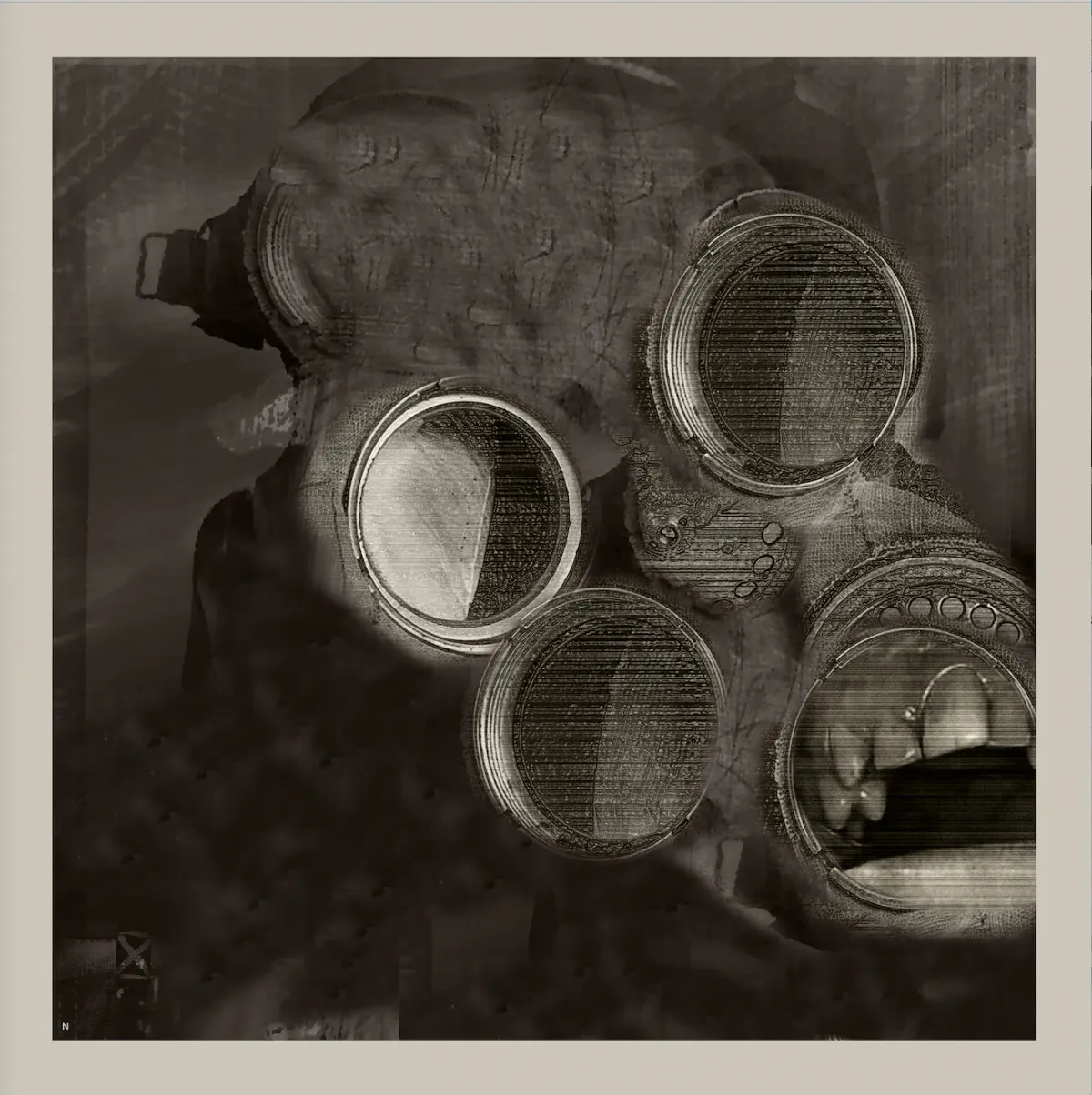 abstractfragmentedgas maskskulldarkmonochromaticindustrialAbstractDark / DramaticExpressionism / EmotionalContemporary / ModernAbstract / ConceptualConflict / SacrificeSpiritual / Symbolic