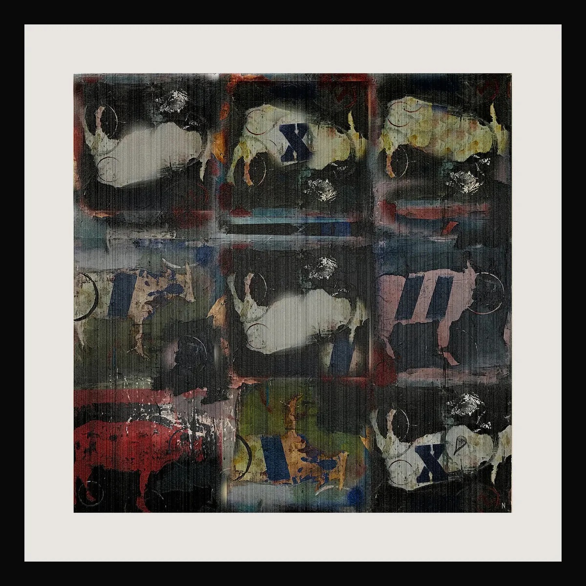 abstractbovinecowgriddistressedgraffitimixed mediacontemporaryAbstractContemporary / ModernBold / GraphicDark / DramaticAnimals / WildlifeAbstract / Conceptual
