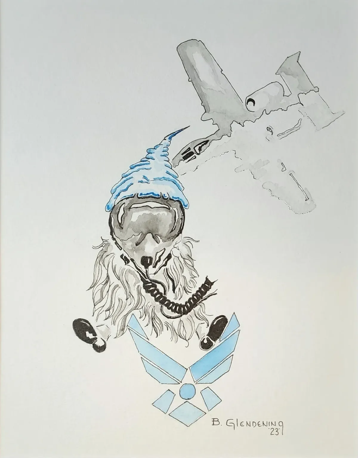 GnomePilotAir ForceMilitary artWhimsicalWatercolorA-10 WarthogContemporary / ModernBold / GraphicLight / SerenePatriotic / Military / FreedomHumor / Whimsy