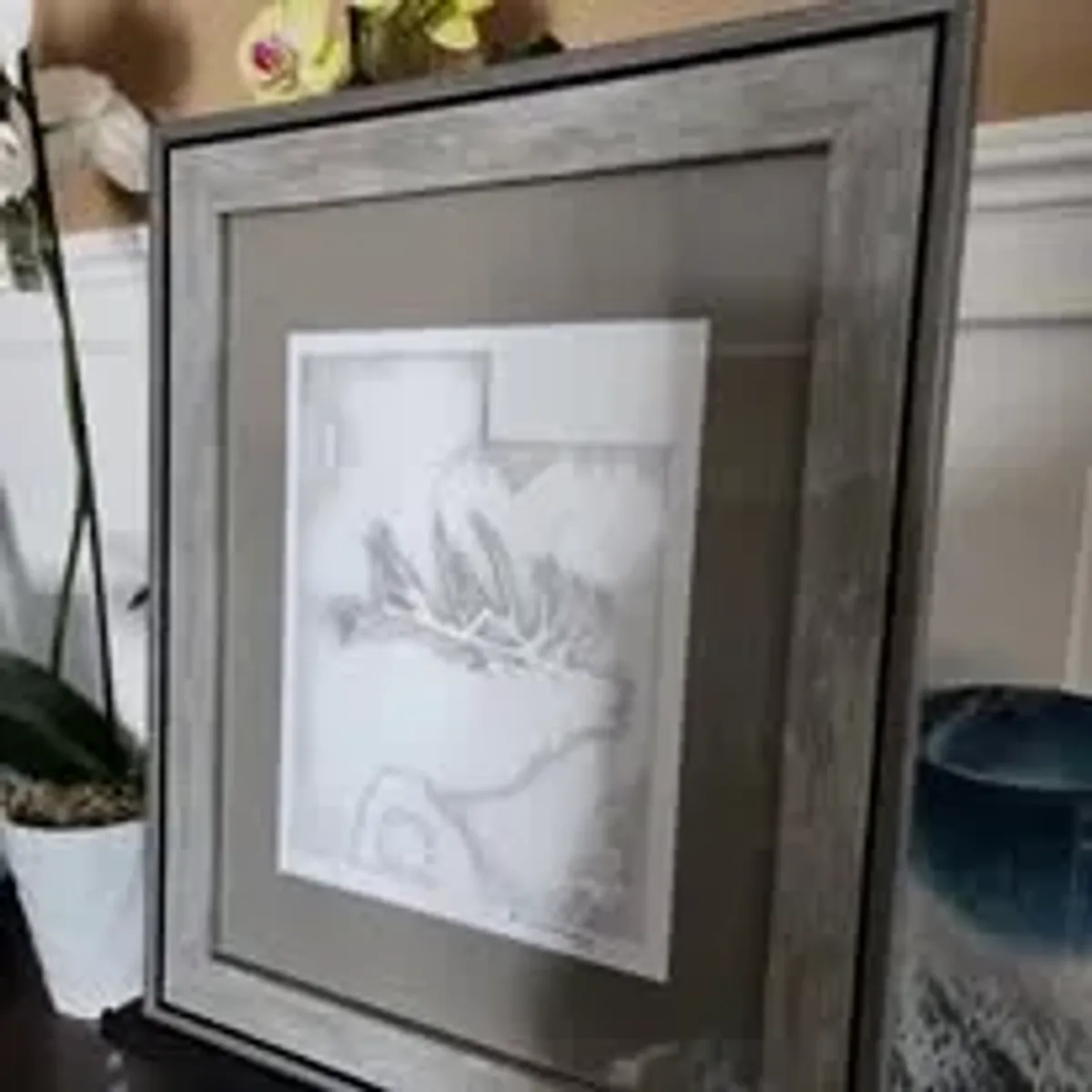 framed artabstract designgray framewhite paperindoor plantornateinterior decorRealismMinimalistLight / SereneAbstract / ConceptualStill Life / Objects