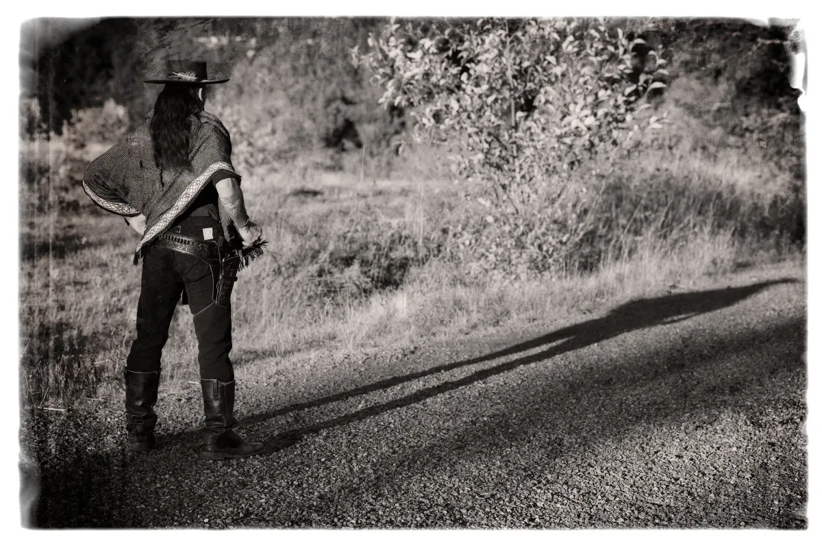 Westernblack and whitecowboysolitudegravel pathshadowoutdoorsRealismDark / DramaticStorytelling / NarrativeLandscape / NaturePortrait / PeopleHistorical / Cultural