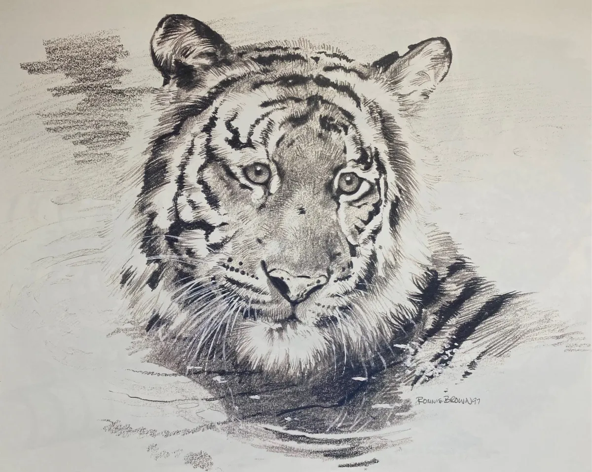 tigercharcoal drawingwildlifeanimal portraitblack and whitesketchfelineRealismDark / DramaticStorytelling / NarrativeAnimals / WildlifePortrait / People