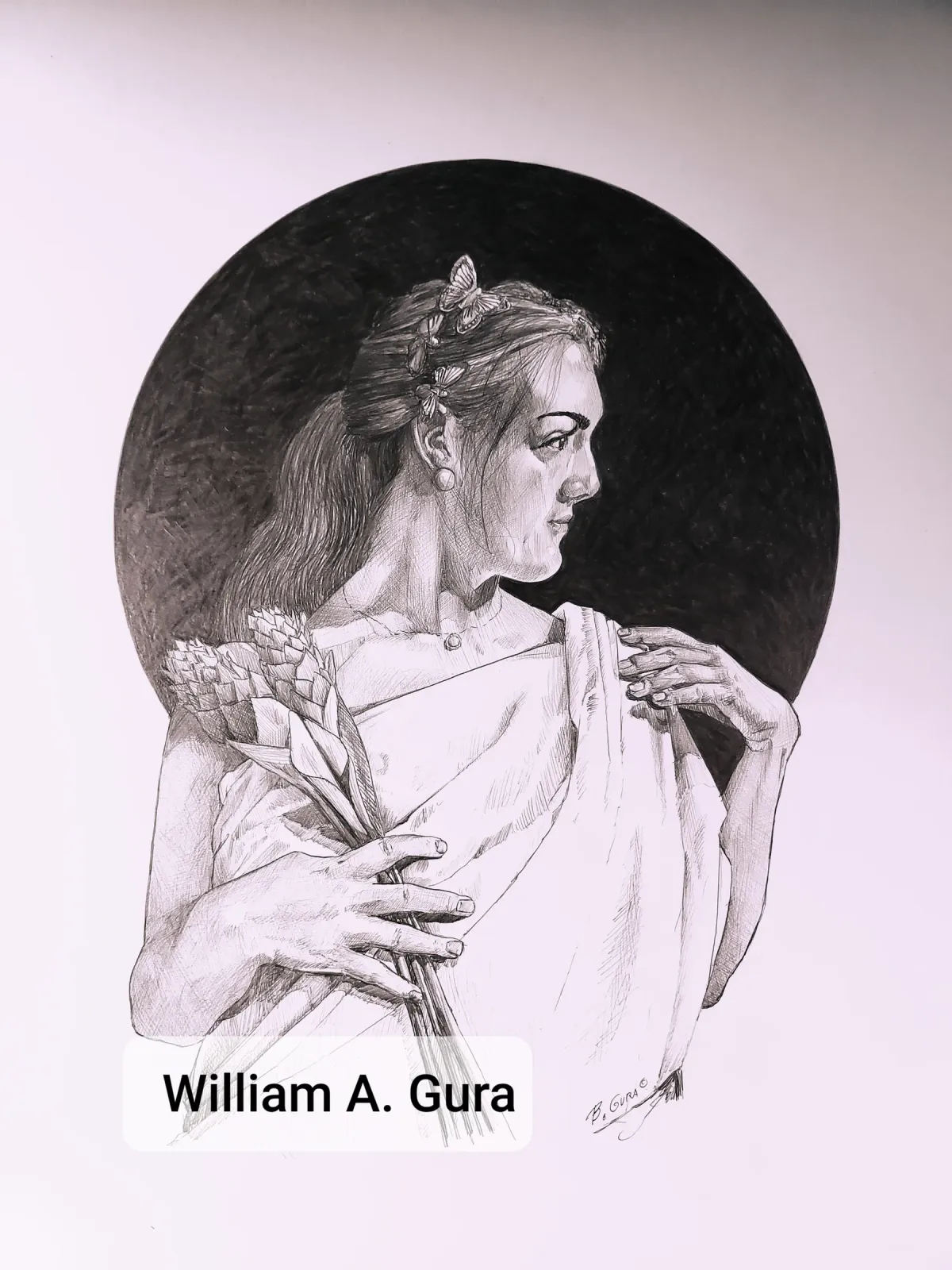 portraitclassicalmonochromedrawingbutterfliesflowersprofileRealismDark / DramaticStorytelling / NarrativePortrait / PeopleSpiritual / SymbolicHistorical / Cultural