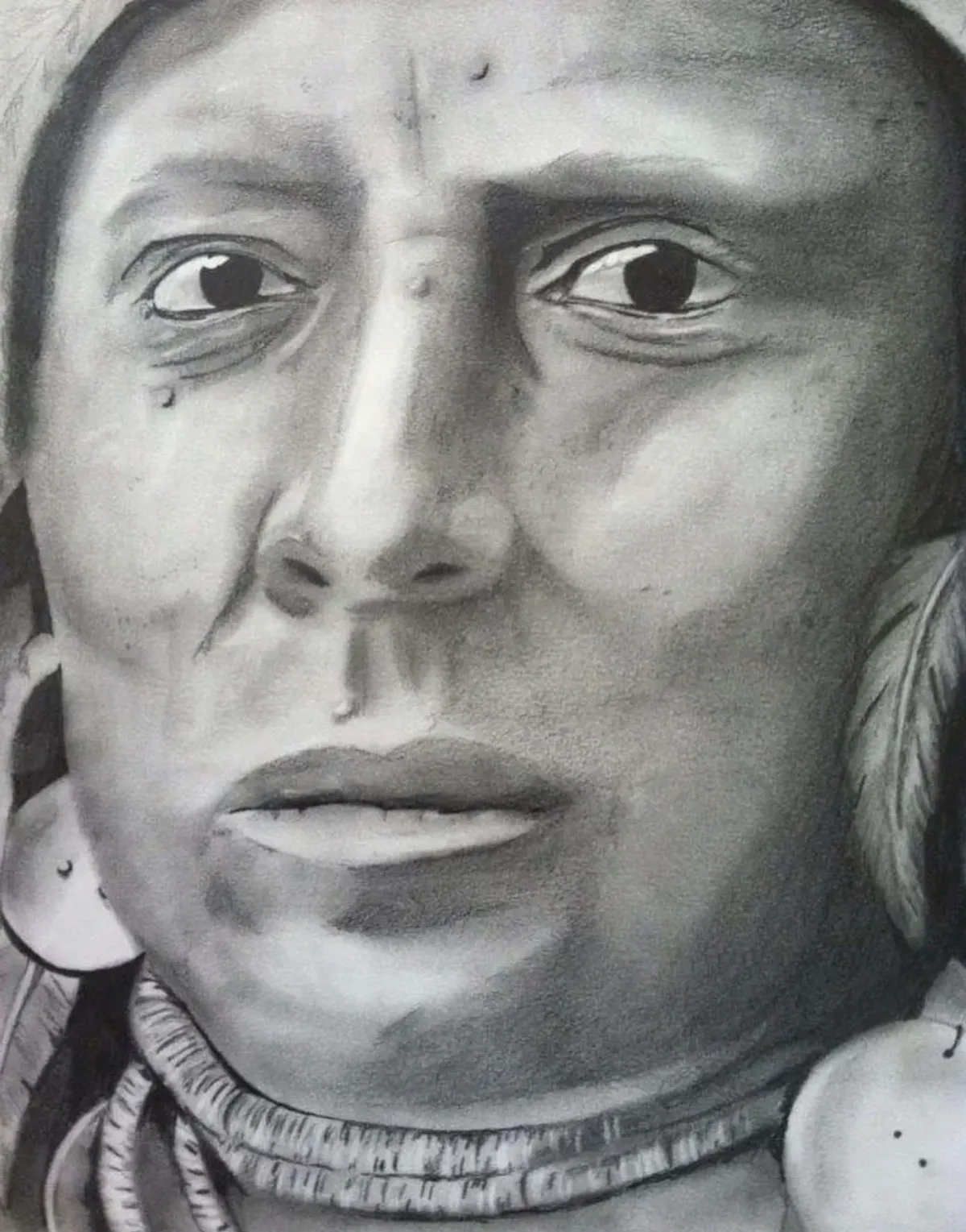portraitdrawingmonochromecharcoalpencilindigenoustraditionaldetailRealismDark / DramaticStorytelling / NarrativePortrait / PeopleHistorical / Cultural