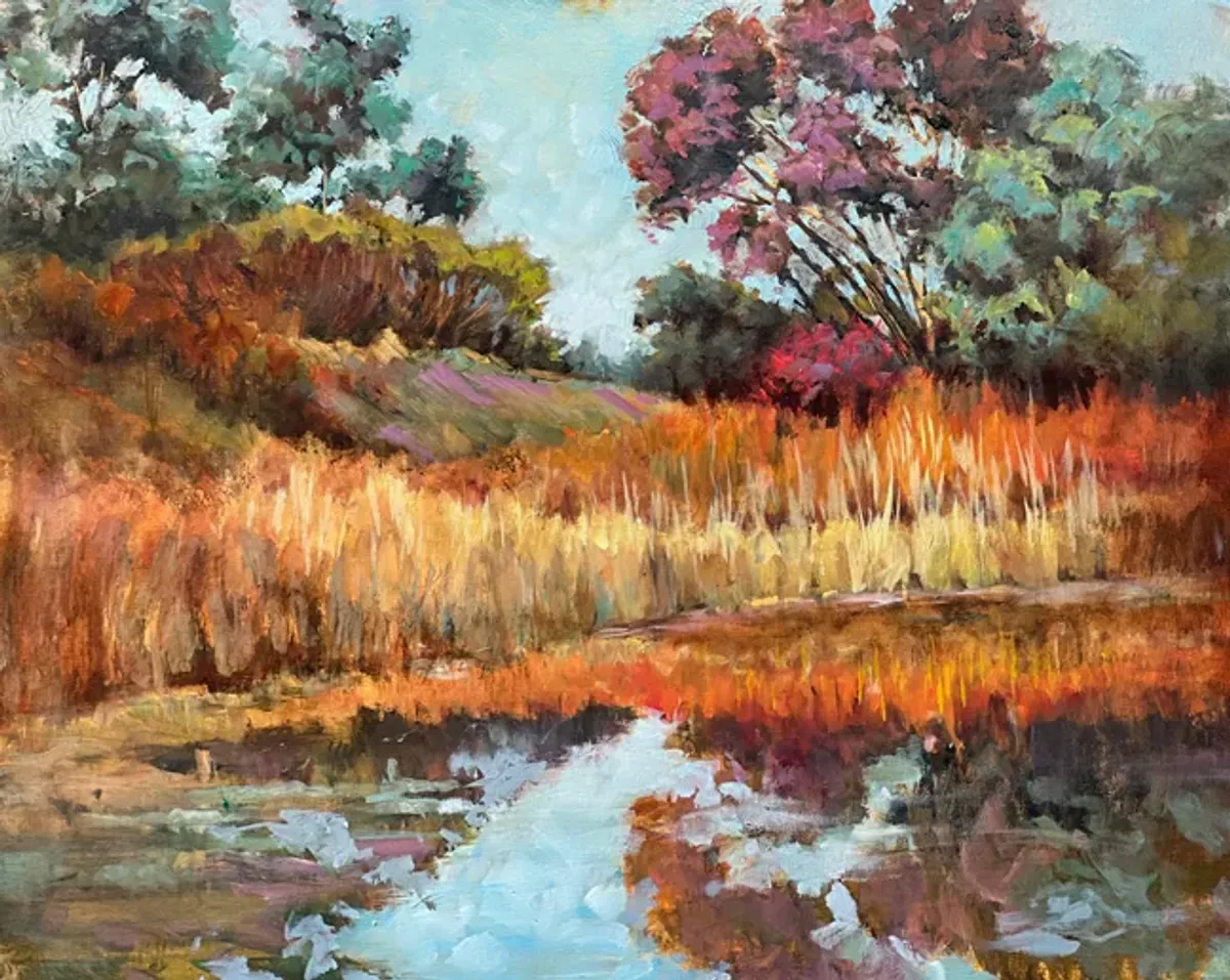 landscapeautumnpaintingwater reflectionimpressionisticnaturewetlandsRealismImpressionismLight / SereneLandscape / NatureSeascape / Water