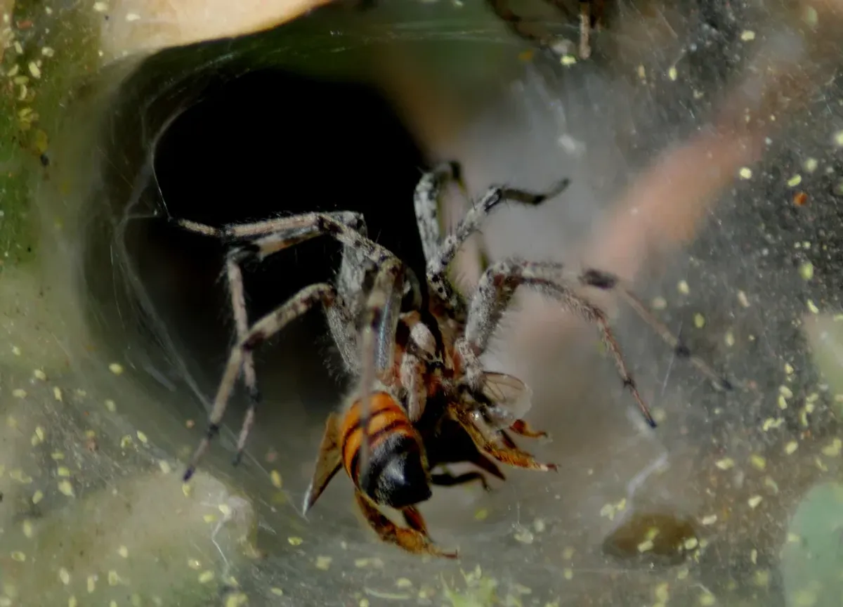 SpiderWebPreyInsectNatureMacro photographyPredationRealismStorytelling / NarrativeDark / DramaticLandscape / NatureAnimals / WildlifeConflict / Sacrifice